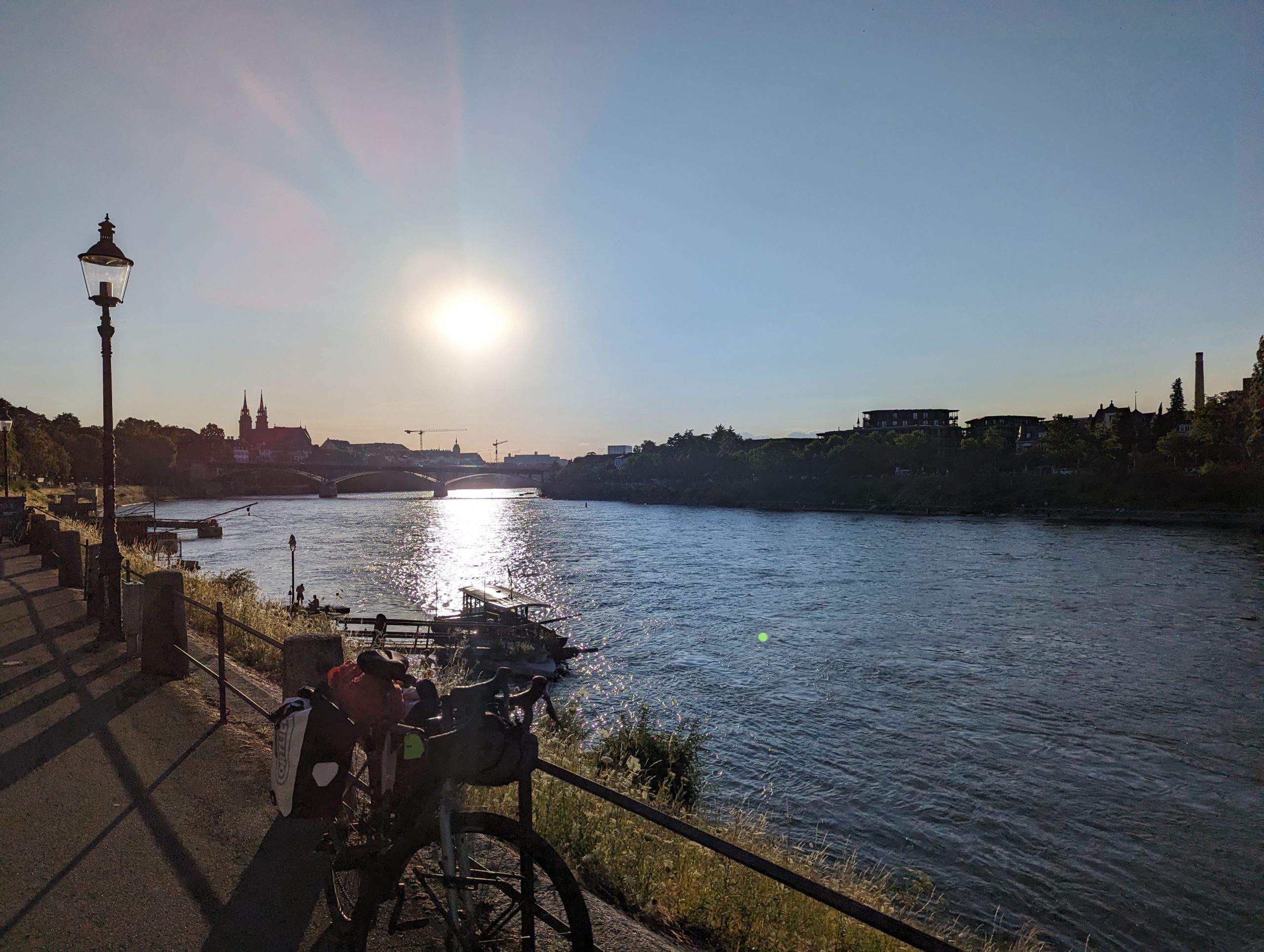 Nach wenigen Minuten erreichte ich dann auch Basel. Zuerst lieft ich zum Bahnhof und dann überquerte ich den Rhein, um auf der anderen Seite in einer Jugenherberge einen Schlafplatz zu suchen. Nachdem ich dort meine Sachen abgestellt und mich kurz gewaschen hatte, ging ich mit frischen Klamotten wieder zum Rhein. Dort wollte ich mir in einem Bistro direkt am Rhein etwas zum Essen holen.