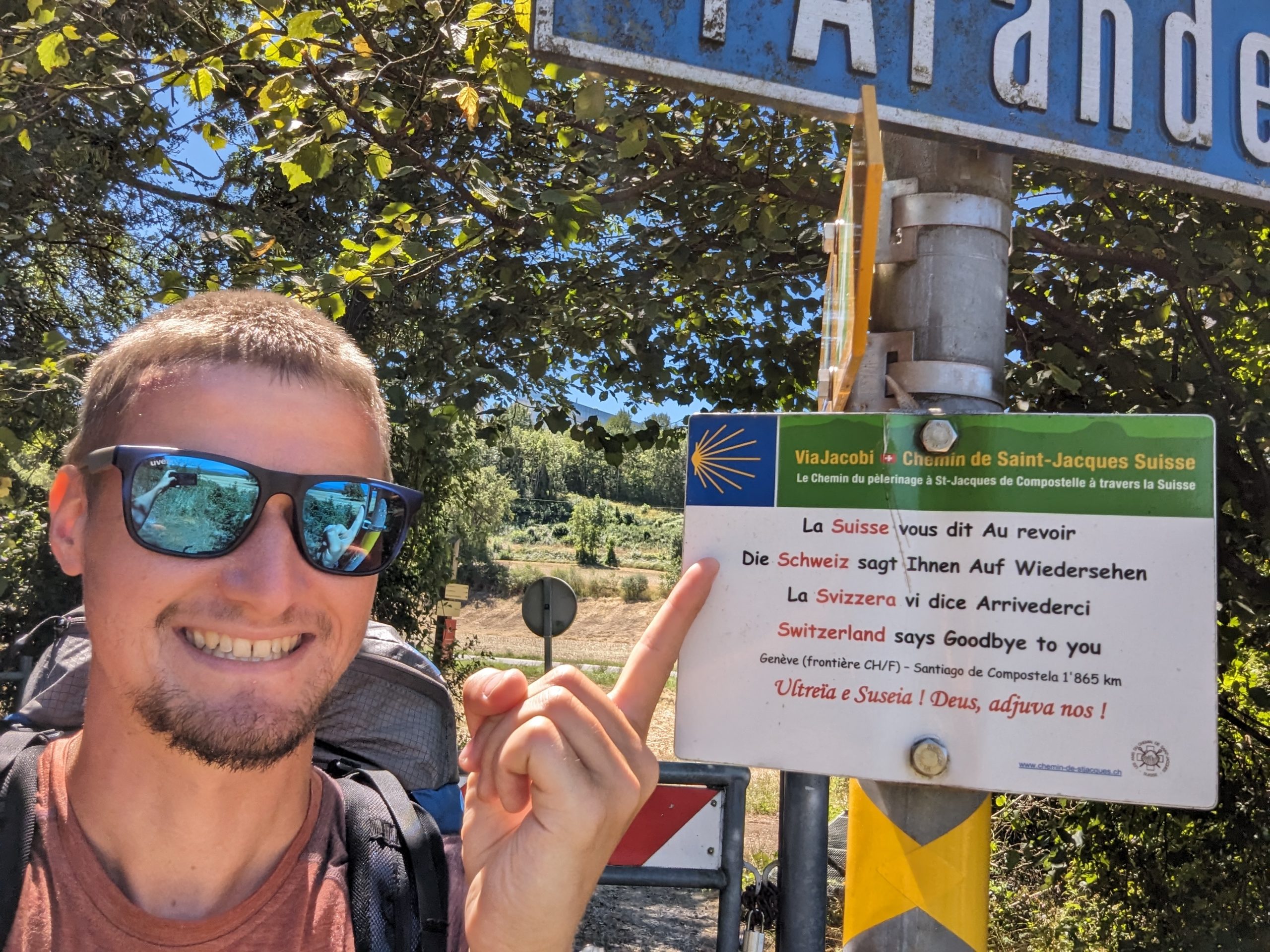 Als ich dann kurz vor der Grenze zu Frankreich ankam, setze ich mich auf einer Bank hin. Von dort aus konnte ich bereits die ersten Häuser in Frankreich sehen. Ich blieb für einige Minuten sitzen und dachte über das Erlebte in der Schweiz nach. Mit der Erkenntnis im Kopf, dass ich in wenigen Minuten die Grenze nach Frankreich überqueren und somit die Schweiz nach nicht einmal 4 Wochen hinter mir lassen werde, freute ich mich sehr und es erfüllte mich mit Dankbarkeit das alles erlebt zu haben.