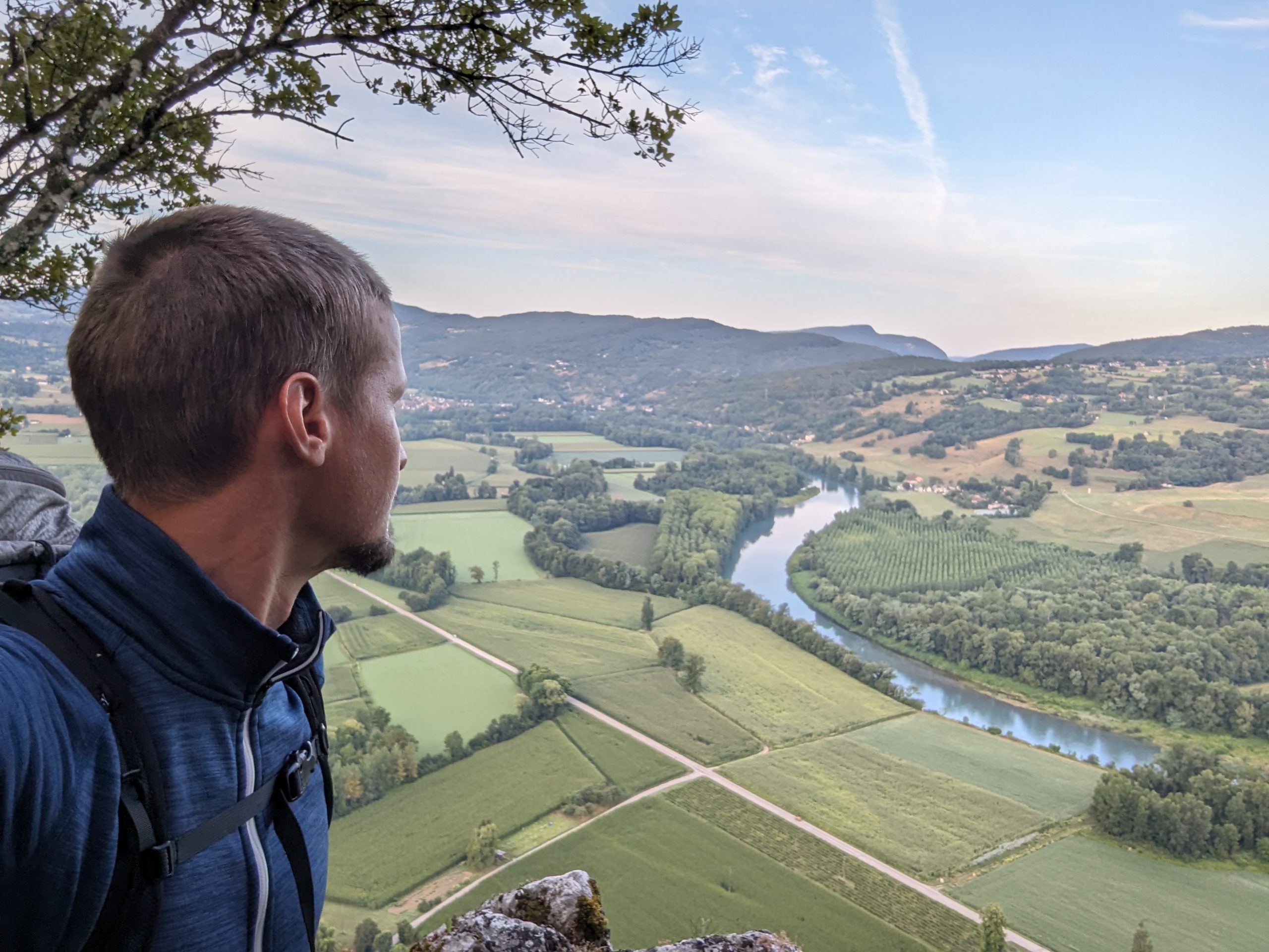 Unten angekommen folgte ich dem Fluss bis nach Yenne. Dort legte ich einen Umweg von 2km ein, um in einem Supermarkt einzukaufen. Ich setze mich auf eine Bank in dem schönen Ort und frühstückte dort. Nachdem ich den Ort verlassen hatte, ging es wieder direkt bergauf und ich kam schnell ins Schwitzen. Hatte ich bis dort hin noch einen echt schnellen Schnitt hingelegt, sank dieser mit jeder Minute weiter rapide ab.