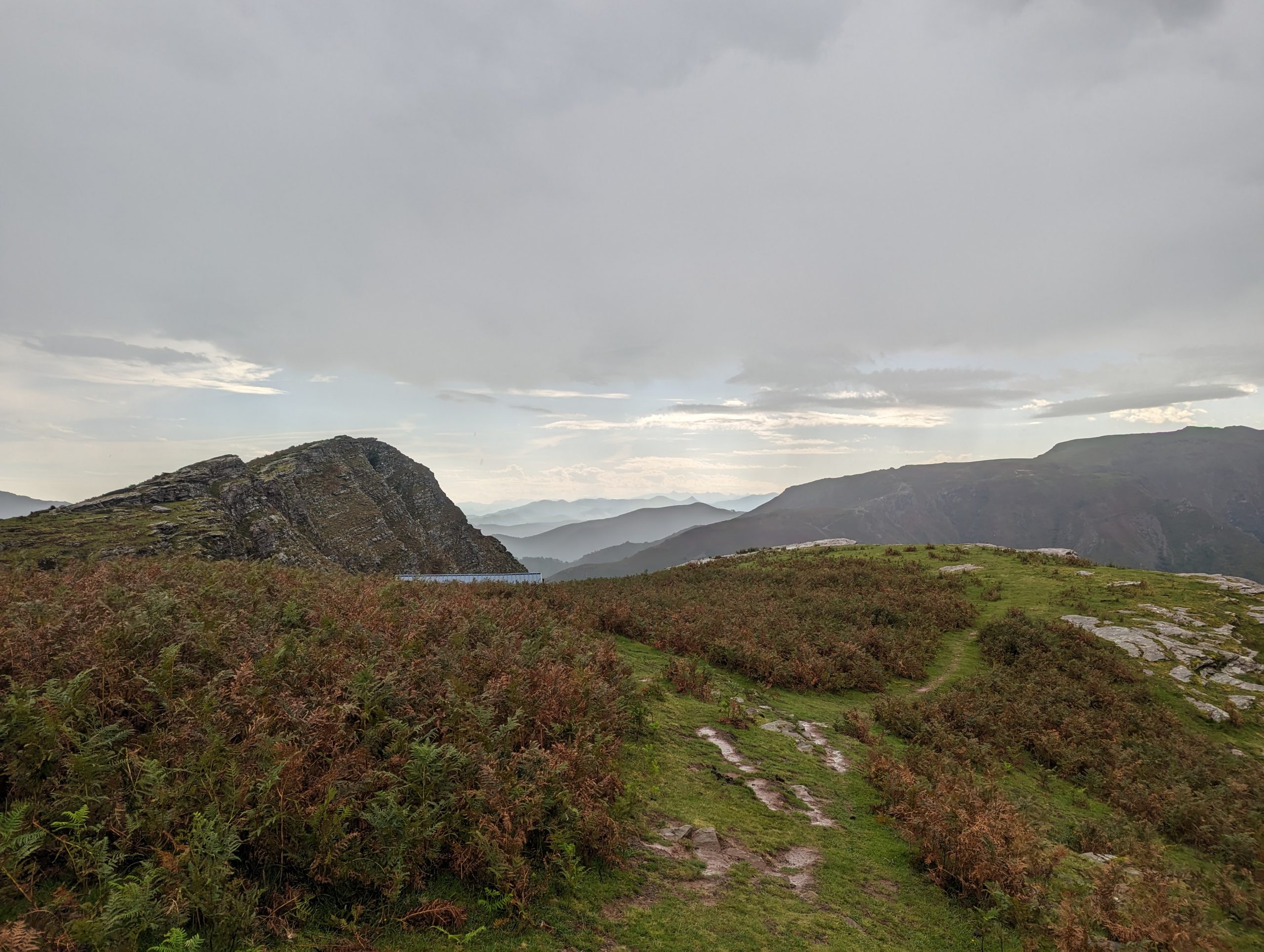 Als wir dann endlich die Spitze des ersten Berges erreicht hatten, wurde das Wetter allmählich auch besser. Durch das bessere Wetter bekamen wir auch langsam einen immer schöneren Blick auf die Umgebung. Leider konnten wir auch von oben nicht bis zum Meer schauen.