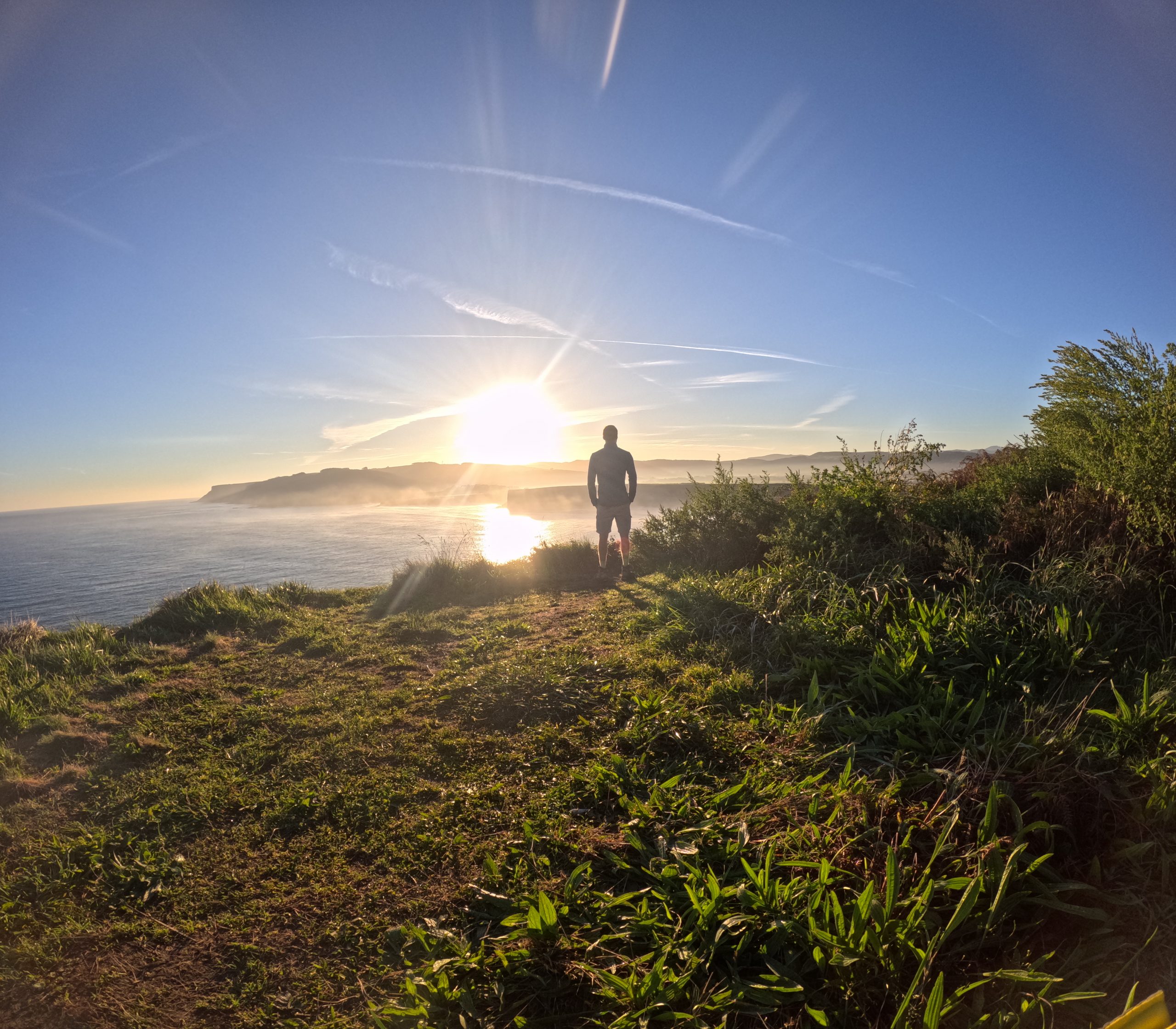 Mit meinen Sachen im Rucksack lief ich knapp einen Kilometer zu einer anderen Klippe, um von dort den Sonnenaufgang zu betrachten. Ich kochte mir schnell einen Kaffee und bestaunte dann den wunderschönen Sonnenaufgang direkt am Meer.
