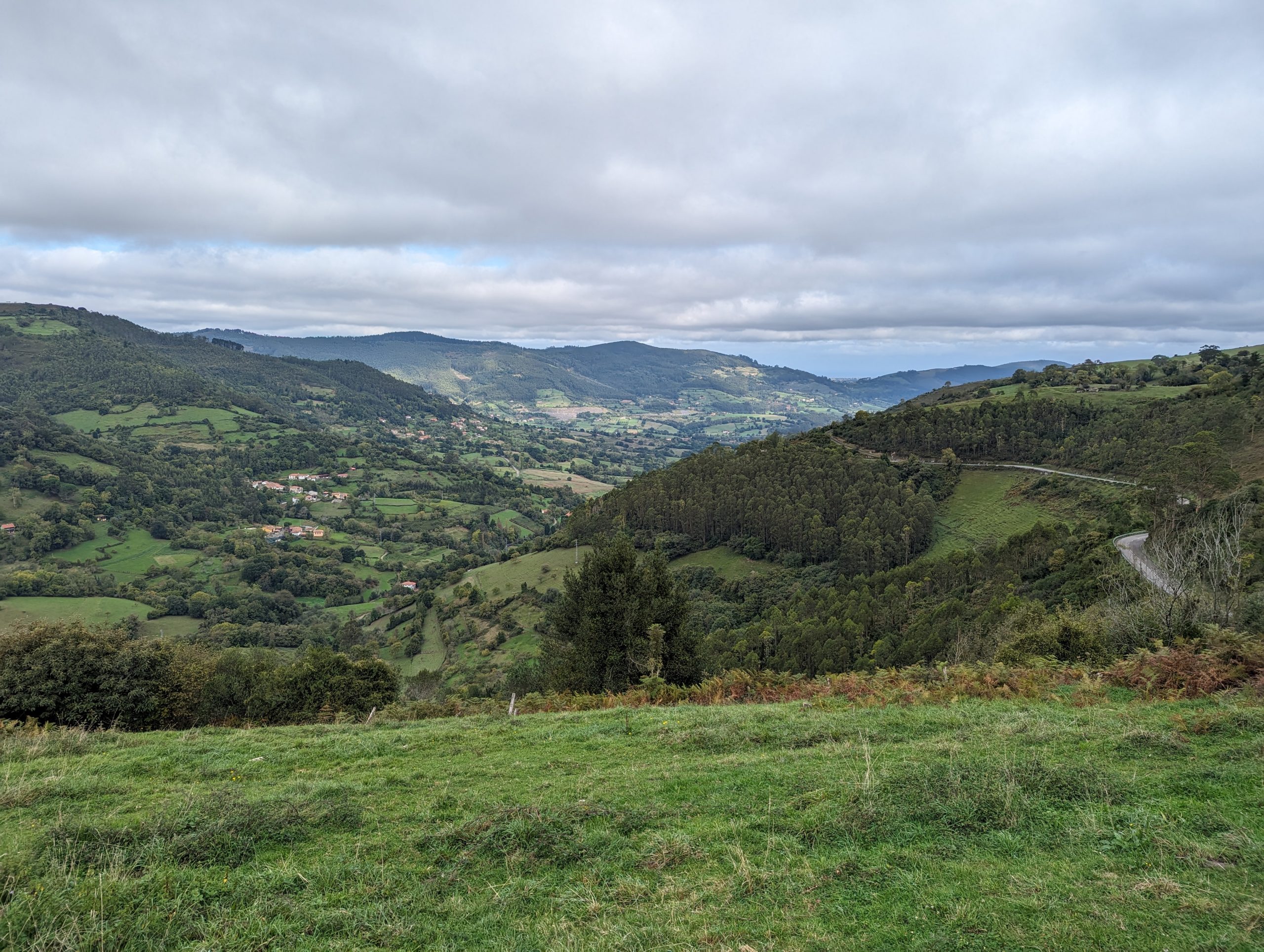 Während ich die Stadt verließ, hingen überall noch die Wolken herum und ich konnte nicht besonders viel sehen. Als diese dann mit der Zeit aufstiegen, bekam ich einen besseren Blick auf die Umgebung. Schnell konnte ich wieder Berge und bald sogar mein Etappenziel Oviedo sehen.