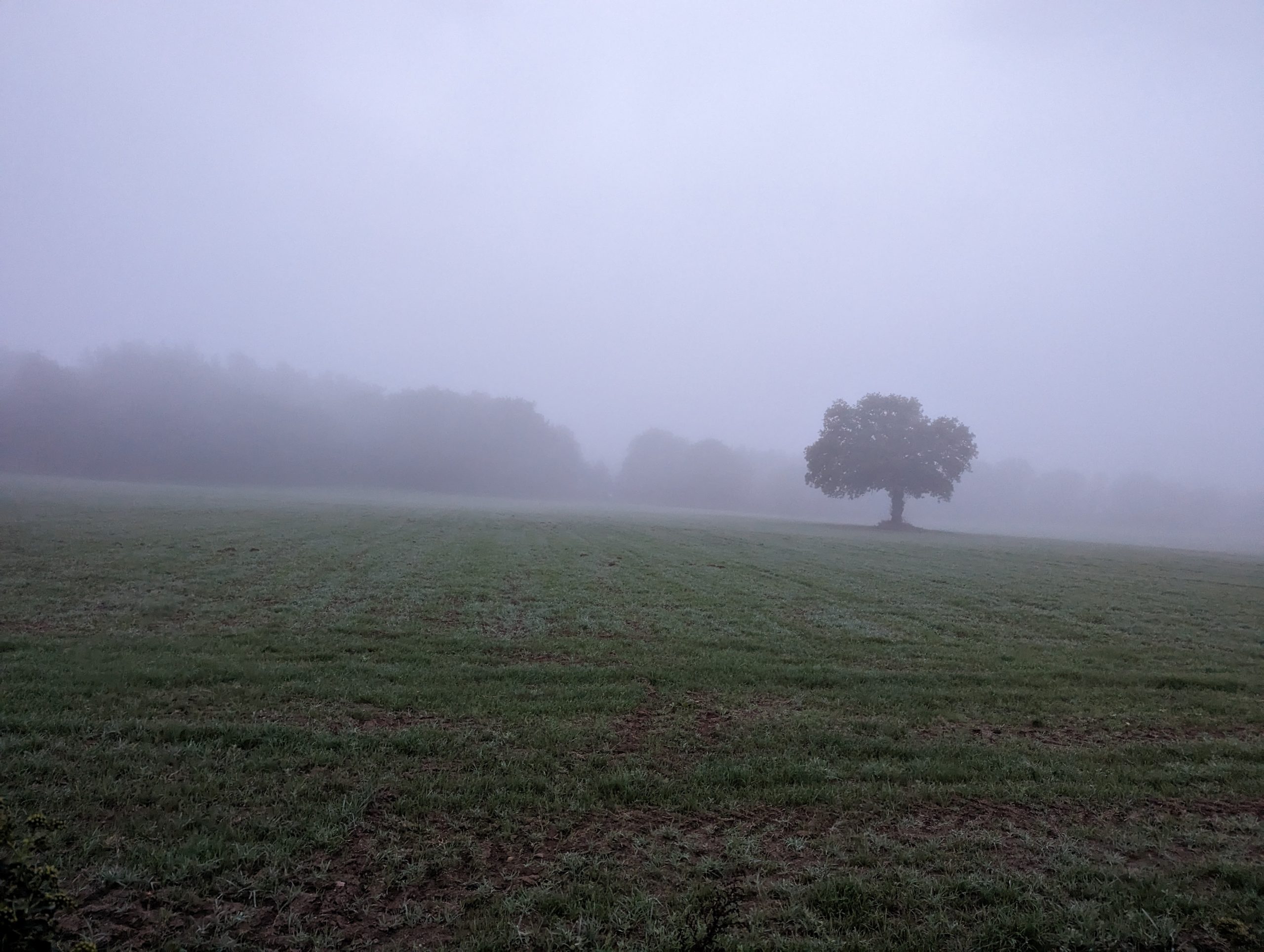 Nach wenigen Minuten kam ich aber an einem Haus vorbei, bei welchem über Lautsprecher klassische Musik abgespielt wurde, was im sonst so stillen Nebel sehr interessant klang. Von der Musik motiviert, lief ich heute in Marschtempo durch die Gegend und legte dadurch schnell einige Kilometer zurück. Da ich auch keine Pausen machte, hatte ich bereits nach kurzer Zeit die ersten 15 km absolviert.