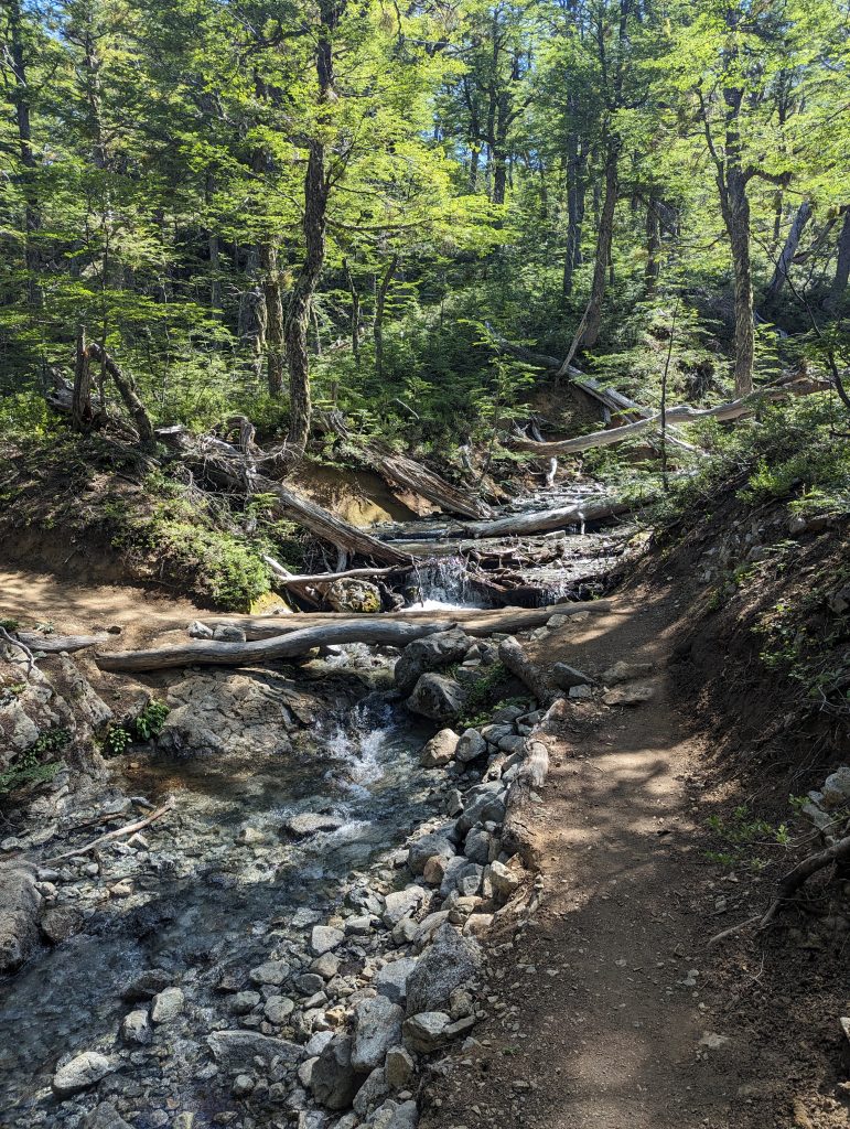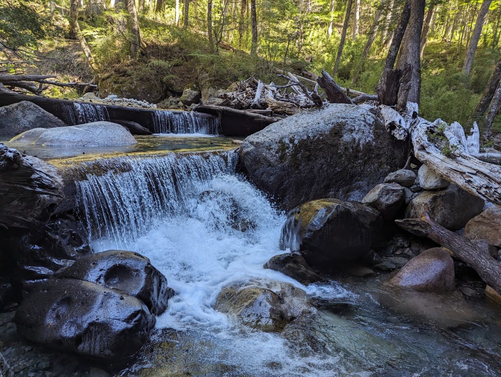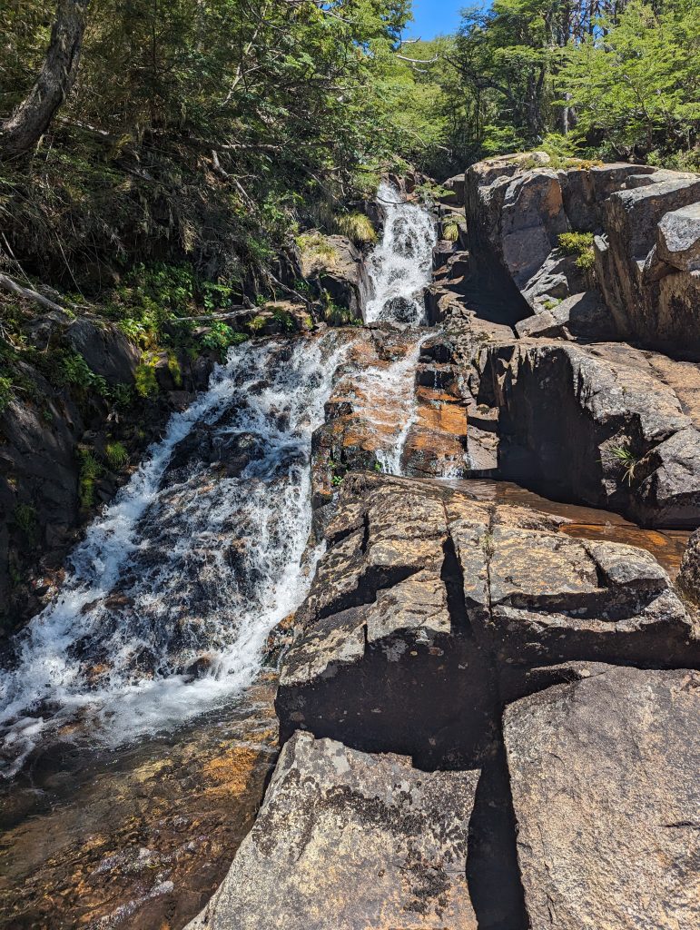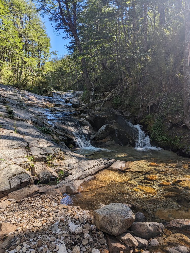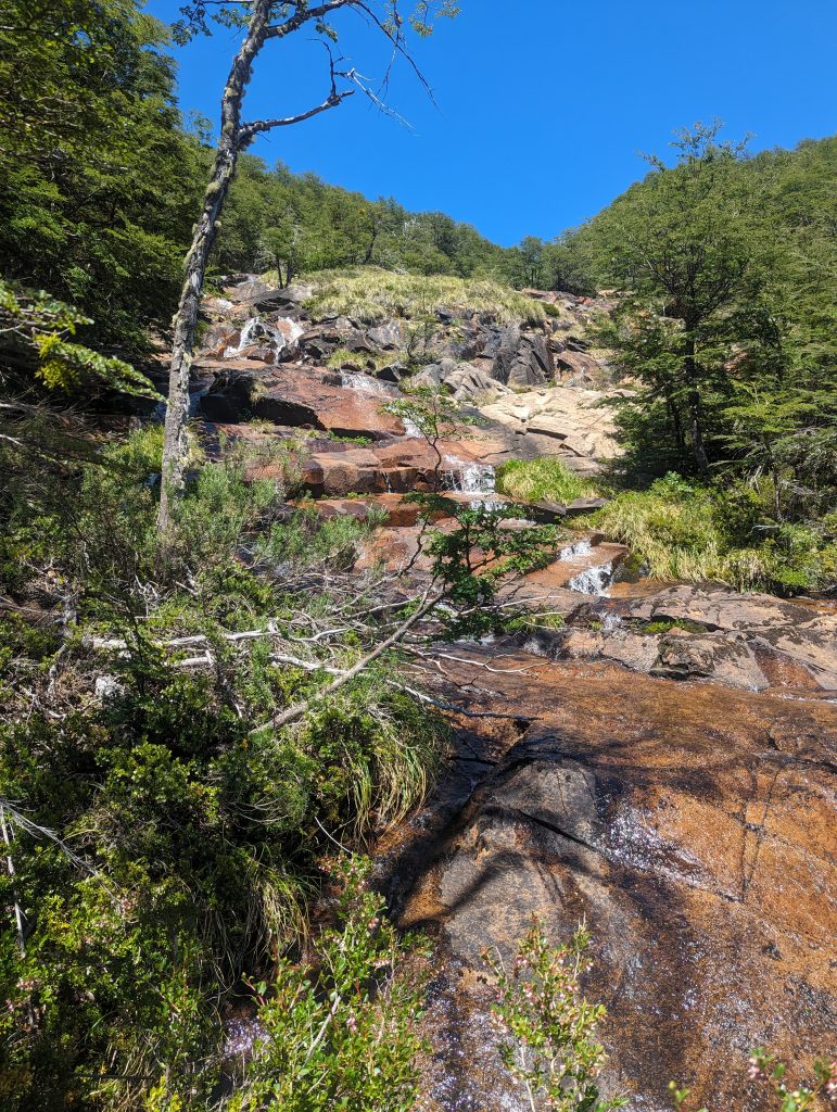 Nach einiger Zeit erreichte ich dann aber endlich den Wald, wo der Weg dann wieder einfacher zu laufen war. Direkt am Fluss gab es einen kleinen Campingplatz, welchen ich aber so früh am Tag noch nicht nutzen wollte. Ich lief kurz zu einem Wasserfall, der sehr interessant aussah.