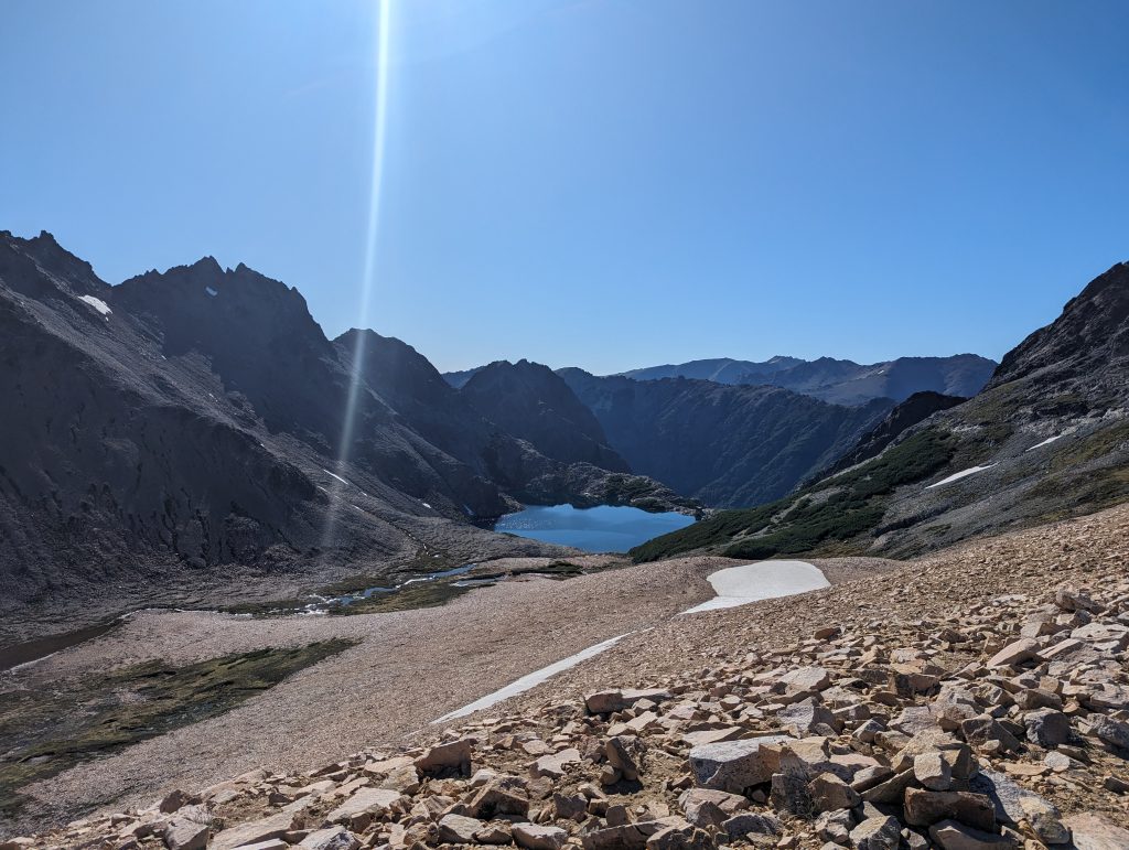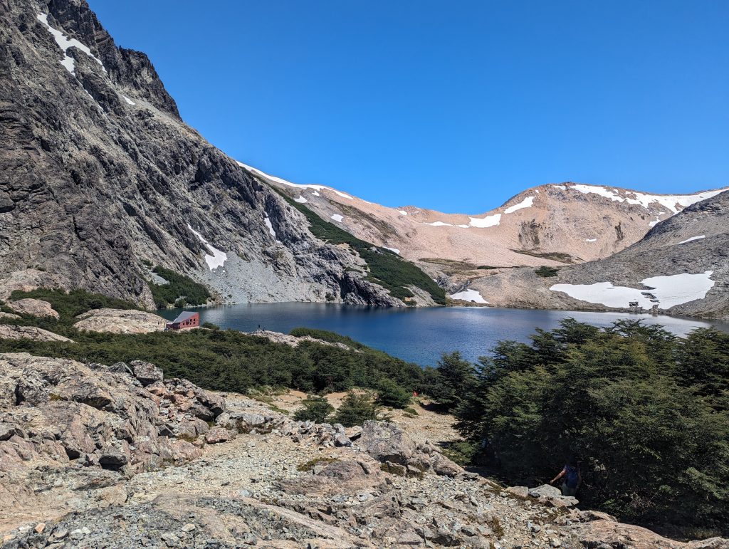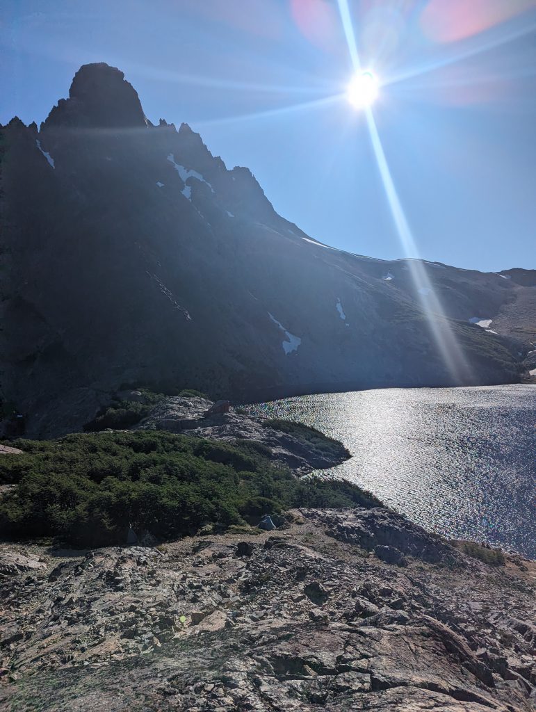 Nach knapp 4 Stunden erreichte ich dann den See mit dem Refugio, wo ich heute übernachten wollte. Nachdem ich mein Zelt an einem der windgeschützten Plätze aufgebaut hatte, unterhielt ich mich eine Weile mit dem Argentinier Sam und holte mir dabei ein paar Inspirationen für die nächsten Wochen ein.