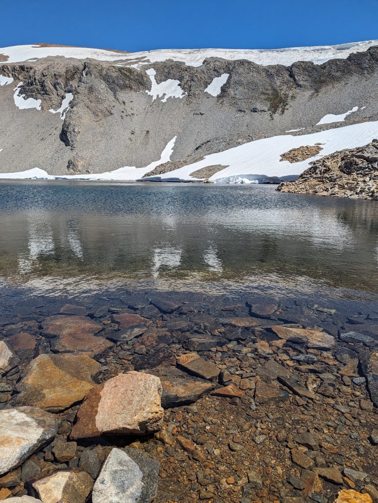 Der Weg war hier ziemlich gut markiert und einfach zu laufen, wodurch ich trotz der hohen Temperaturen schnell nach oben kam. An einem Bergsee, bei dem das Wasser wirklich ziemlich klar war, trank ich nochmals von dem leckeren und erfrischend kalten Wasser, ehe ich mich dann an den letzten Anstieg machte.
