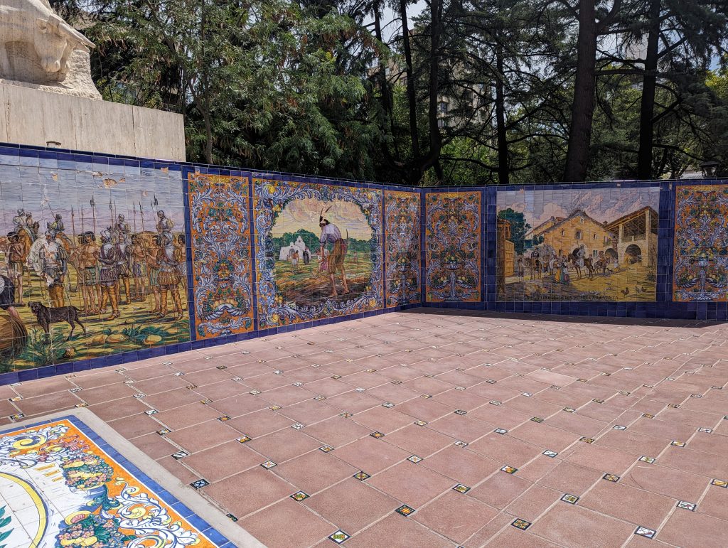 Von dort aus lief ich weiter zum Plaza Espana, welcher mit schönen Fließen bestückt war und einen tollen Eindruck machte. Auffällig viele Leute lagen im Schatten der Bäume im Park herum.