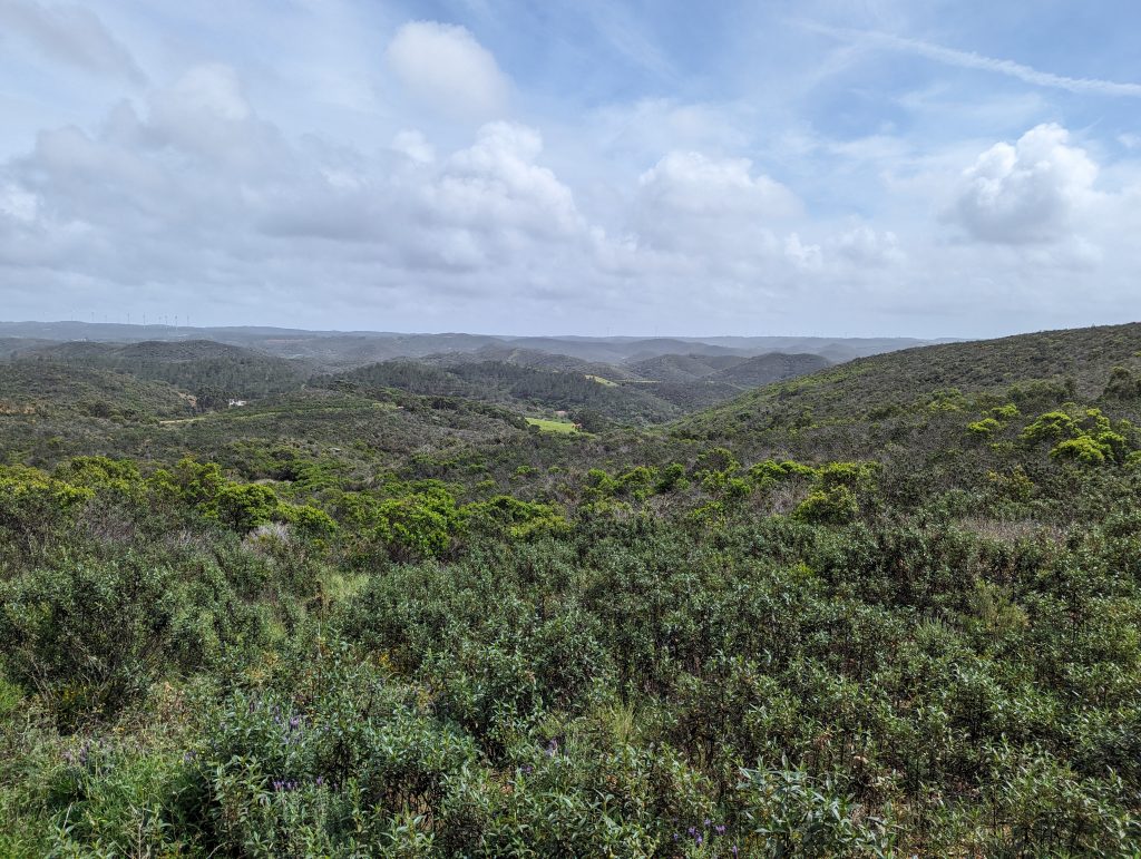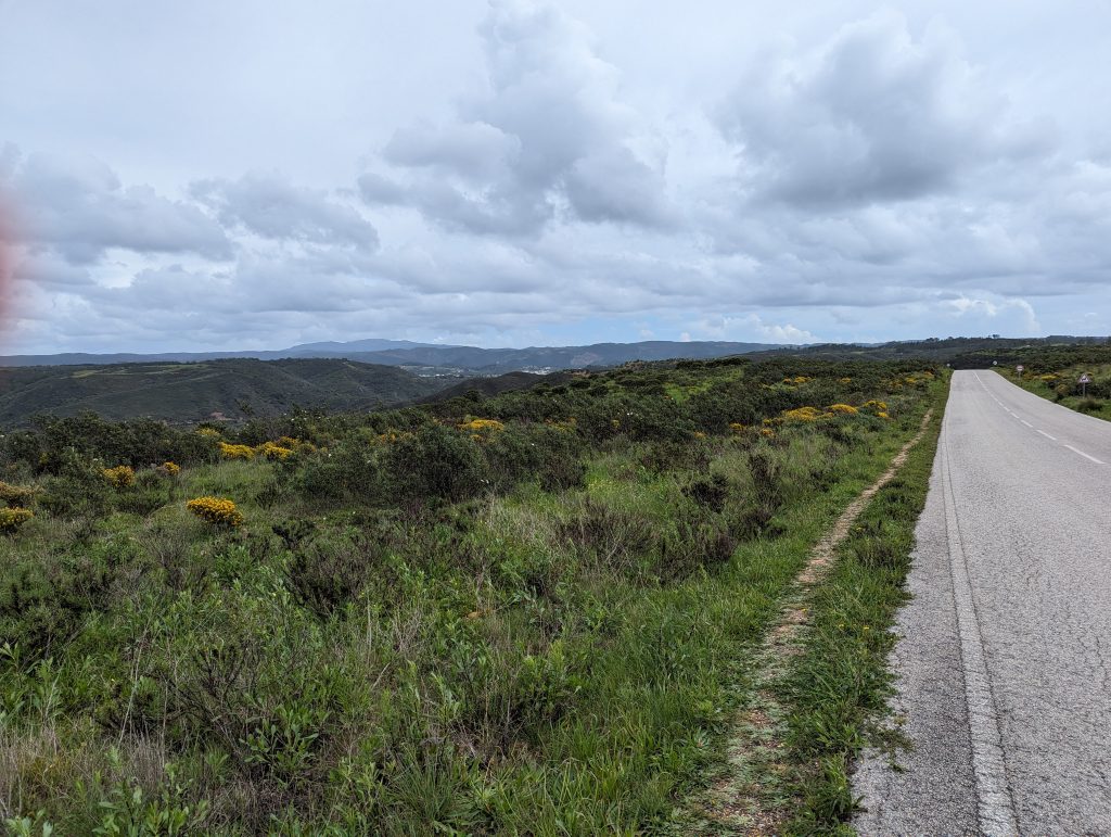 Dies war vorerst der letzte Aussichtspunkt am Meer. Es ging erneut weiter ins Landesinnere bis nach Carrapateira. Dort kaufte ich mir in einem Laden eine Cola und machte 5 Minuten Pause. Für viele Leute wäre das bereits das Etappenziel gewesen. Da es aber erst kurz nach 11 Uhr und ich noch nicht erschöpft war, wollte ich bis zum nächsten Ort gelangen. Dazu musste ich weitere 21 km absolvieren, was aber gut machbar sein sollte.
