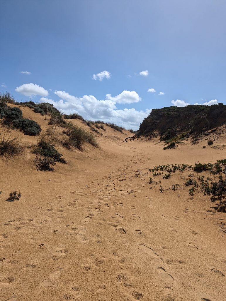 Nach der Pause geht es schon bald auf breiteren Wegen immer weiter ins Hinterland und somit weg von der Küste. Hier aber noch ein letzter Blick zurück.