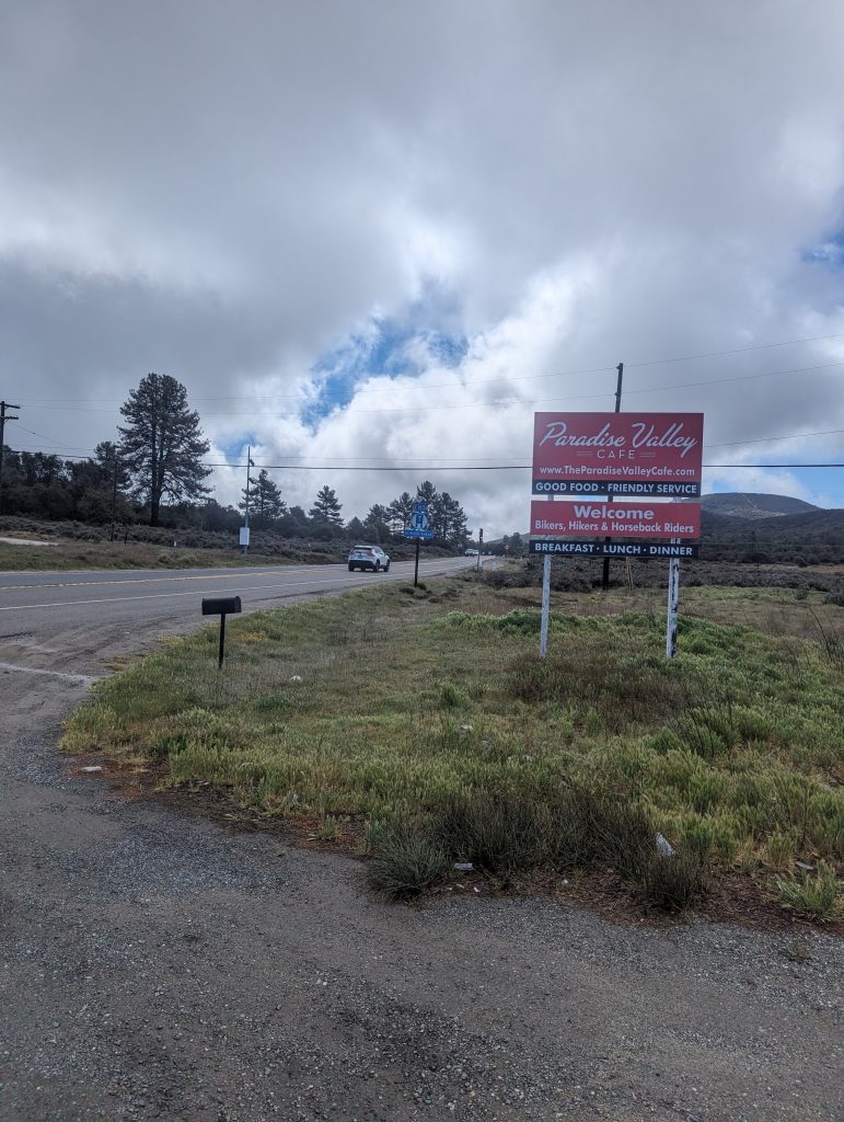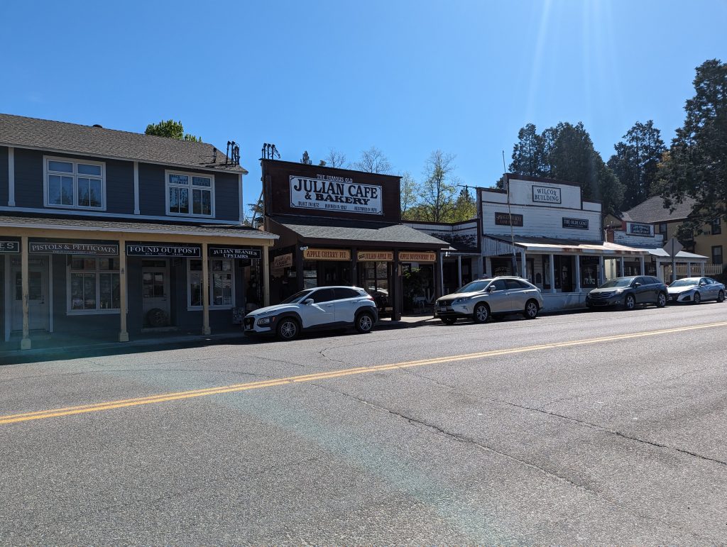 Bereits nach kurzer Zeit komme ich an der Straße an, von wo aus ich nach Julian trampen will. Noch während ich an der Straße entlang in Richtung Kreuzung laufe, fährt eine Frau an mir vorbei und fragt mich, ob ich nach Julian muss. Kurze Zeit später sitze ich bei ihr im Auto. Sie fährt jeden Tag mehrmals vom Trail nach Julian und wieder zurück, um Hiker abzusetzen. Wir nehmen noch einen anderen Hiker unterwegs mit und fahren dann ca. 20 Minuten bis nach Julian. Dort lässt uns die Frau dann raus.