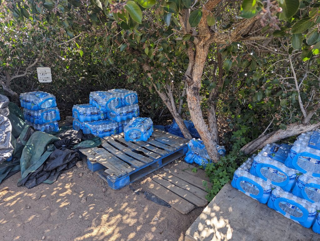 Ich laufe vom Haus wieder etwas nach oben und fülle mein Wasser auf. Heute gibt es erst in 19 Meilen (30km) eine verlässliche Wasserstation an einem Hostel. Am Wassertank treffe ich noch zwei Hiker, die 6 Liter Wasser mitnehmen, da sie nicht wissen, ob sie die Strecke heute schaffen. Ich frühstückte noch kurz und fülle mir dann 4 Liter ab, die bis zum Hostel locker reichen sollten. Dann trinke ich nochmals einen Liter auf ex und laufe los.