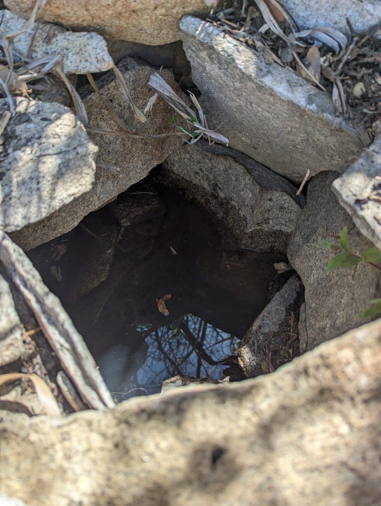 In der warmen Mittagssonne laufe ich immer weiter den Berg hinauf. Immerhin weht ein erfrischender Wind und somit ist es nicht ganz so erdrückend. Ich versuche meinen Puls bei 130 zu belassen, da ich dann weniger Schwitze und kaum etwas trinken muss. Nach etwa 7 km finde ich dann tatsächlich eine Stelle, an der ich mein Wasser auffüllen kann. Unter einem Stein gibt es ein kleines Loch mit kaltem und leckerem Wasser.