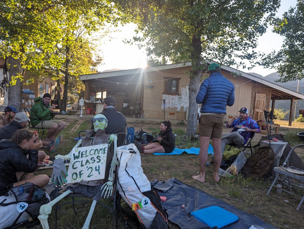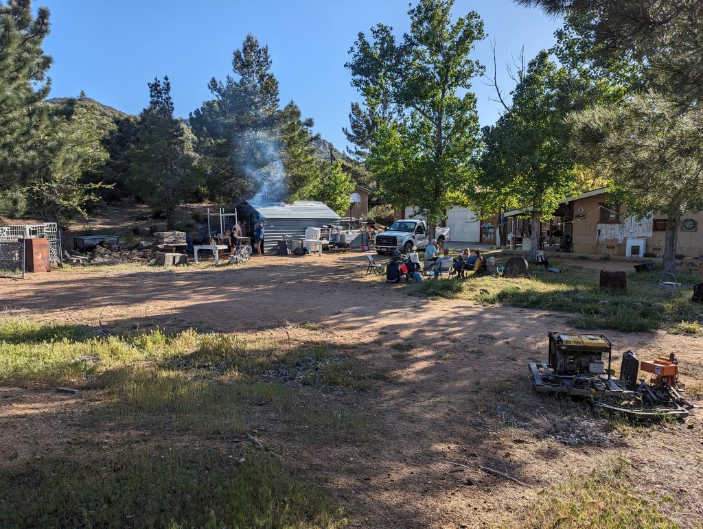 Nach einigen weiteren Kilometern komme ich dort an und treffe direkt auf eine große Gruppe von Hikern, die sich hier gerade ausruhen. Neben Wasser gibt es auch eine erfrischende kalte Cola. Ich setzte mich einige Zeit zu Pete, dem einzigen Hiker, den ich von den ersten Tagen sehen kann. Gerade als wir uns wieder auf den Weg machen wollten kommt der Besitzer des Hauses. Wie wir gelesen hatten, ist das ein sehr gutes Zeichen. Anscheinend kommt er ab und an hier vorbei und grillt für die Hiker. Kurze Zeit später werden alle eingebunden, um das Essen vorzubereiten. Auf dem Grill werden Hähnchen, Würste, Reis und Bohnen zubereitet. Das Essen riecht schon richtig gut mein Hunger wird immer größer. So wie mir geht es auch den anderen Leuten hier. Als es dann endlich fertig ist, holt sich jeder von uns etwas zum Essen und wir verspeisen gemeinsam die leckere Mahlzeit. Dazu gibt es noch eiskaltes Bier, dass der Besitzer für uns mitgebracht hat.
