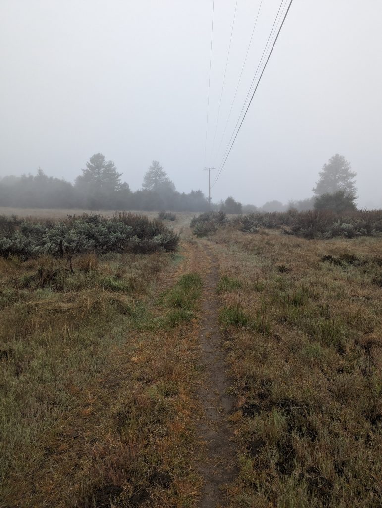 Nachdem ich die Straße überquert habe geht es zuerst durch Gras und auf einmal finde ich mich in großen Kuhweiden wieder. Lange Zeit laufe ich durch das hohe Gras und sehe in der Ferne auch immer wieder Kühe grasen. So wirkt es fast ein wenig suspekt, dass ich hier Kühe antreffe. Vor einigen Stunden war ich noch in kargen Wüstenlandschaften unterwegs und hier wachsen Bäume und grünes Gras.