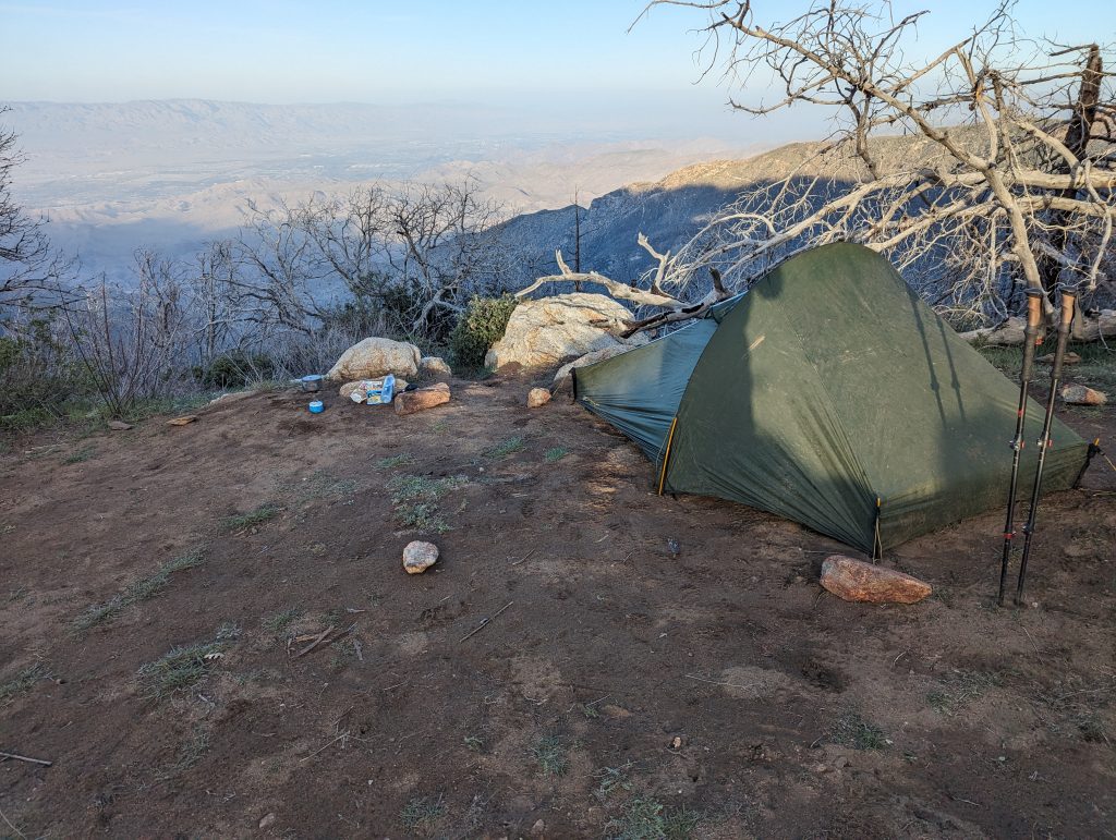 Bereits nach kurzer Zeit treffe ich auf das Lager, welches ich gestern eigentlich angepeilt hatte. Dort packt gerade noch ein Hiker seine letzten Sachen zusammen. Als ich ihn Frage wie es ihm geht, meint er ziemlich schnell, dass er leider kein Wasser mehr habe und bis zur nächsten Möglichkeit zum Auffüllen, sind es noch 12 km. Kurzerhand gebe ich im die Hälfte meines übriggebliebenen Wassers ab. In den Morgenstunden sollten wir das beide auch jeweils mit einem halben Liter schaffen.