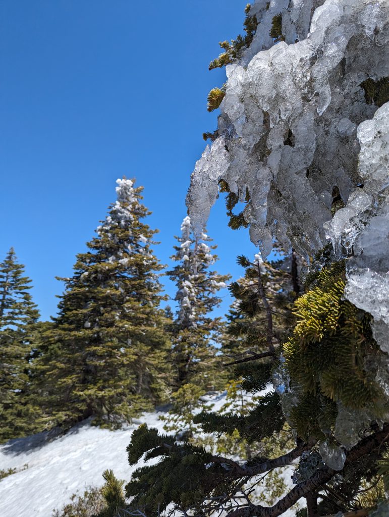 Weiter hinten hängt an den Bäumen noch einiges an Eis, welches sich wahrscheinlich durch den Sturm gestern angesammelt hat und wirklich interessant aussieht.