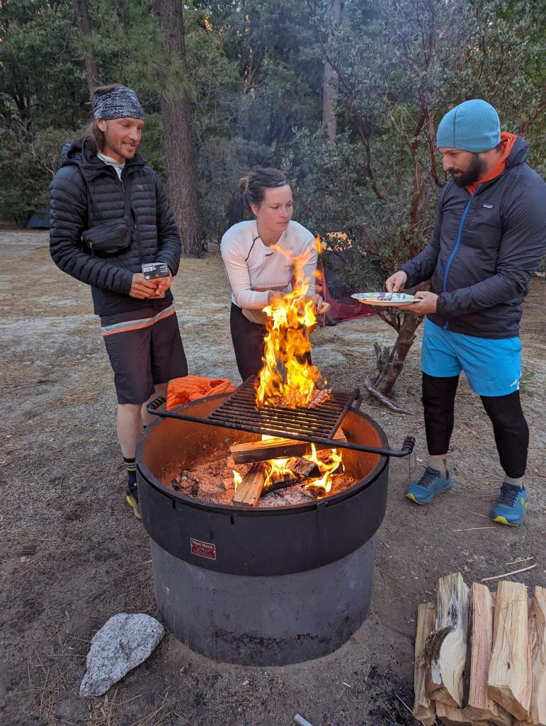 Zurück auf dem Campingplatz grillen wir dann alle gemeinsam und trinken dazu das ein und andere Bier. Auch wenn das Grillen teilweise eher einer Feuershow ähnelt, schmeckt das Essen echt gut und es geht sehr witzig zu. Kurz nach 10 Uhr ist dann aber Feierabend und jeder verschwindet wieder in sein Zelt. Während die anderen hier morgen einen Zero-Day, also einen Tag ohne Laufen bzw. einen Pausentag, einlegen, geht es für mich morgen schon wieder weiter.
