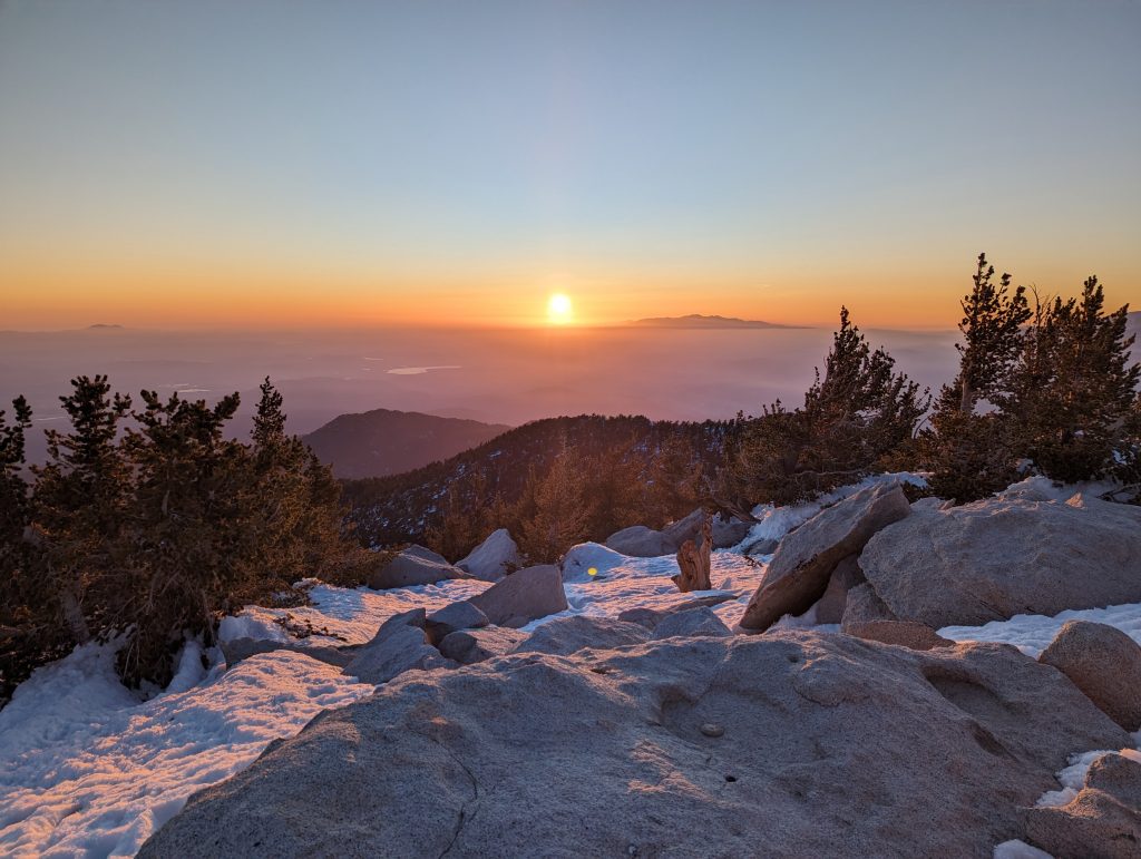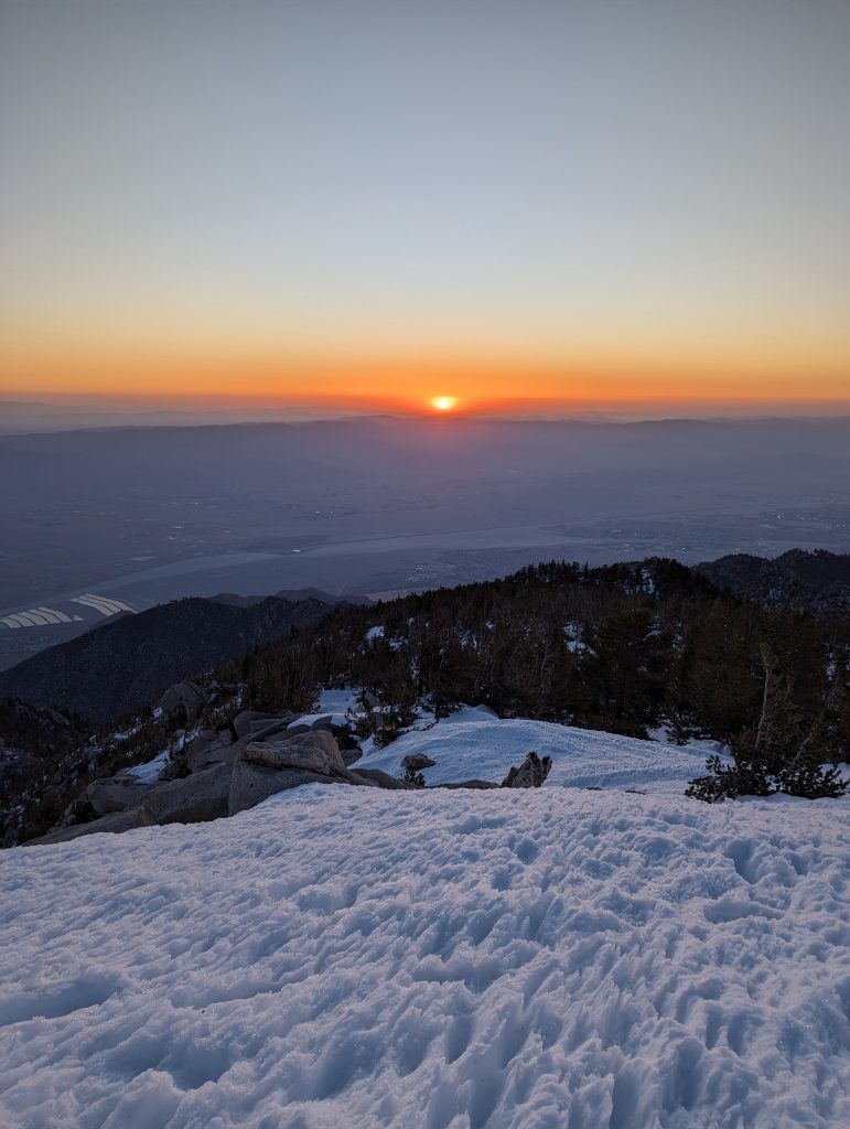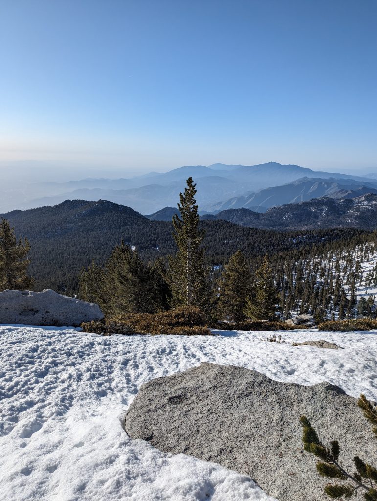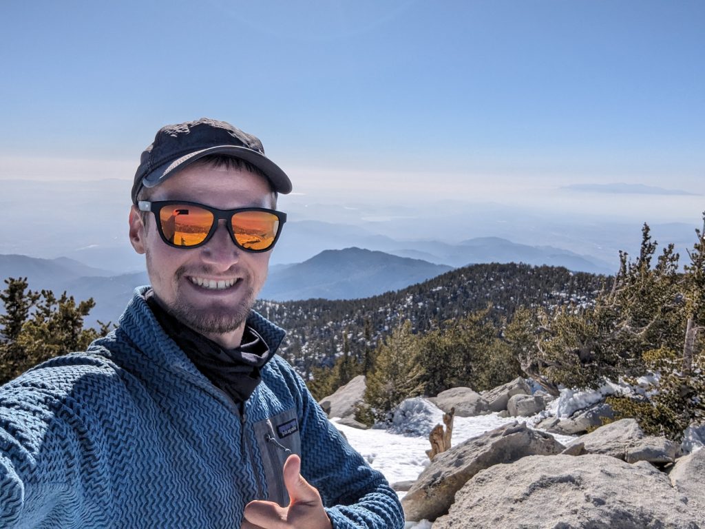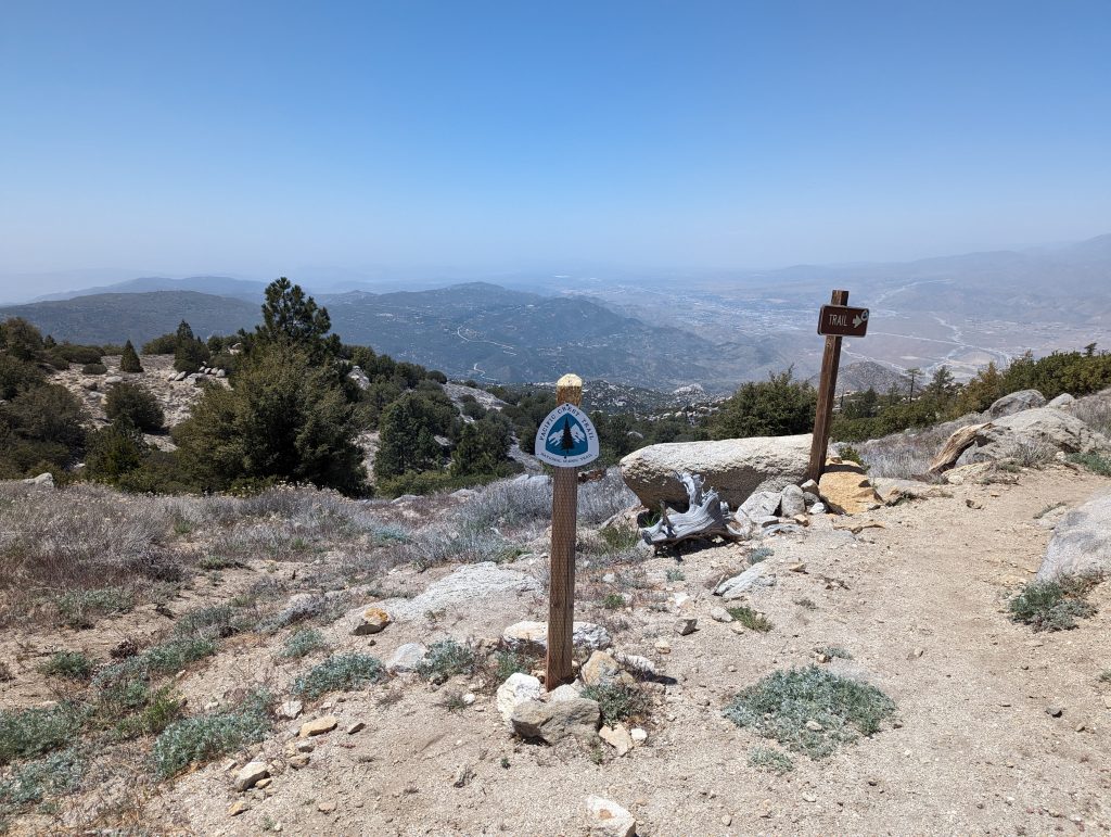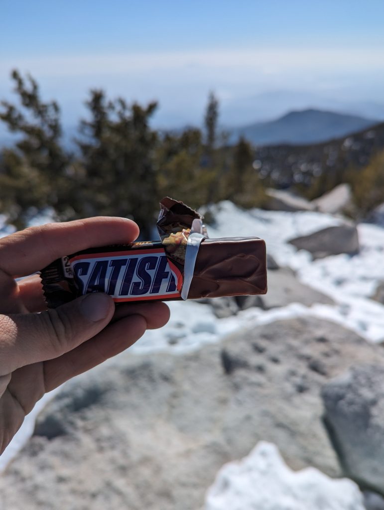 Bald habe ich das schwierigste hinter mir und kurz vor dem Gipfel geht es Recht entspannt weiter nach oben. Gegen 17 Uhr erreiche ich den Gipfel auf 3323m. So sagt es zumindest meine Uhr. Bis dahin habe ich bereits mehr als 1600 Höhenmeter im Aufstieg hinter mir und freue mich somit umso mehr, dass ich den Gipfel erreicht habe. Die Aussicht ist wunderbar und ich genieße den Blick in die Ferne sehr. Auf die erfolgreiche Besteigung des Mount San Jacintos gönne ich mir ein Snickers.