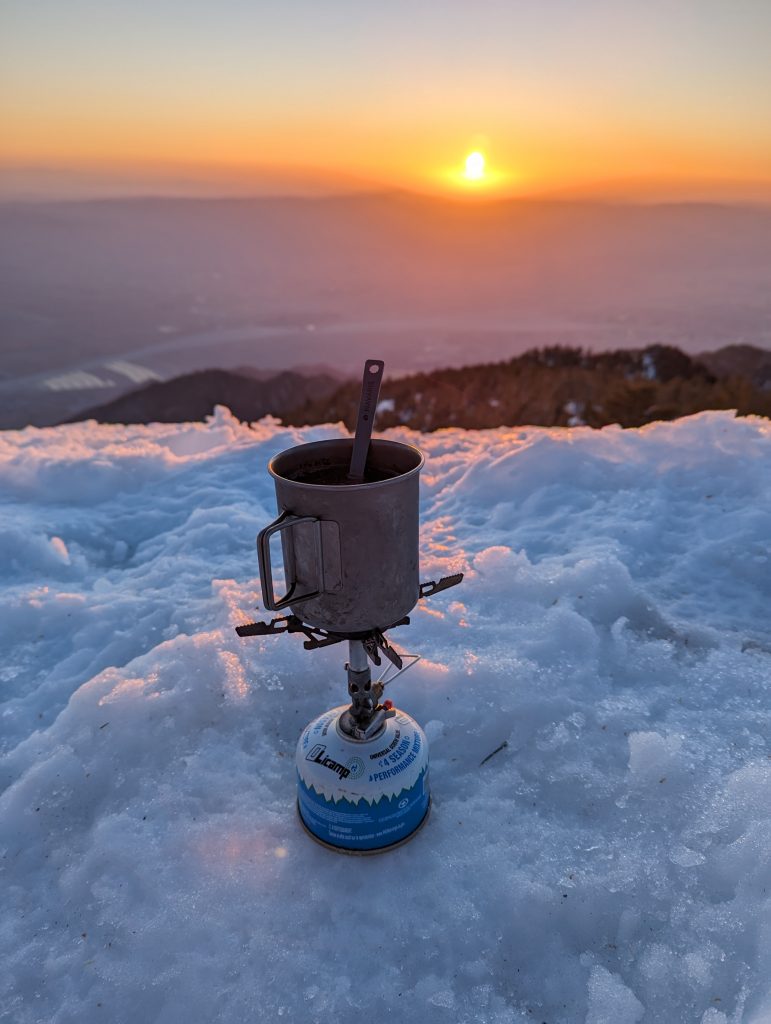 Zusammen schauen wir uns den Sonnenaufgang an. Ich mache mir noch entspannt einen warmen Kaffee, der in der Morgenkälte besonders gut tut.