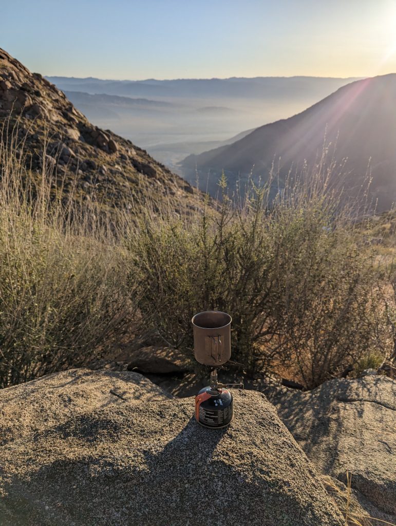 Den Wecker habe ich um 15 Minuten vorgestellt, um mich an den früher werdenden Sonnenaufgang anzupassen. Also wache ich um 5:30 Uhr auf, koche mir meinen Haferbrei und schaue mir den Sonnenaufgang an.