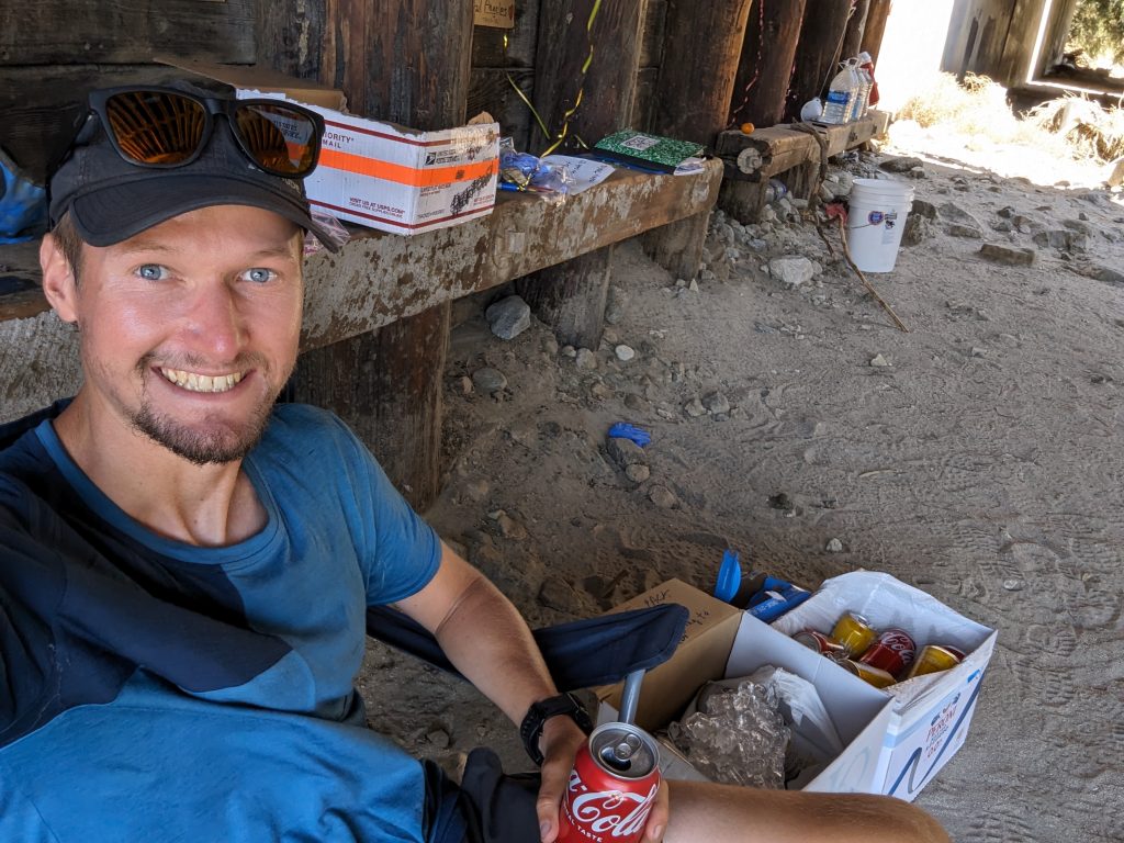 Er erzählt mir dabei, dass er vielleicht nächstes Jahr den PCT laufen möchte und dass er das hier öfters für Hiker mache. Nach den Tacos gibt er mir noch ein leckeres Stück Kuchen, den auch seine Mama gebacken hat. So viel gutes Essen hatte ich schon lange nicht mehr und ich staune Mal wieder über die Freundlichkeit des Mannes. Selbst war er noch nie auf dem PCT unterwegs und weiß auch nicht wirklich viel darüber. Trotzdem bringt er wildfremden Leuten Trinken und Essen vorbei. Gegen 21 Uhr verabschiedet er sich dann und ich gehe in mein Zelt zum Schlafen.