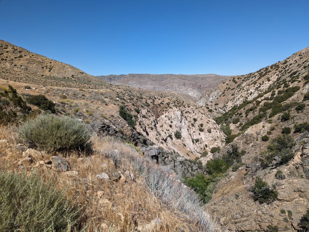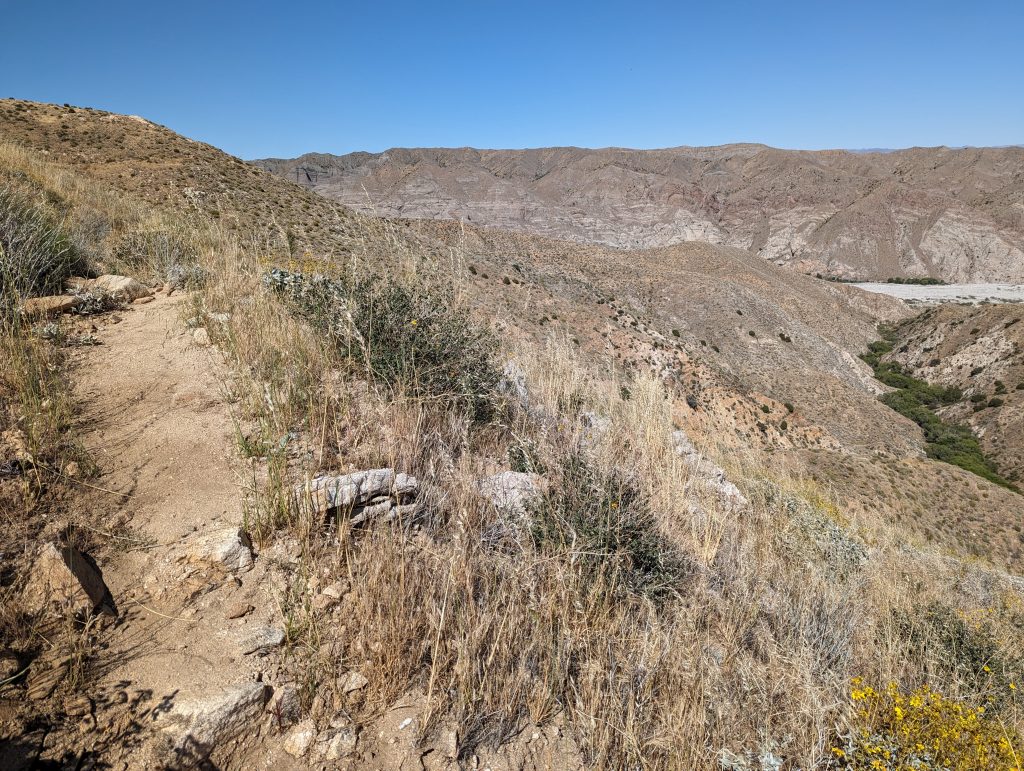 Gegen 15 Uhr erreiche ich den eigentlich angepeilten Campspot. Bis dahin habe ich bereits mein Tagesziel von 20 Meilen (32 km) geschafft. In der Mittagssonne mache ich Pause, esse Couscous mit Thunfisch und ruhe mich ein wenig aus. Da ich aber noch keine Lust habe mein Zelt aufzubauen, mache ich mich gegen 17 Uhr nochmals auf den Weg.