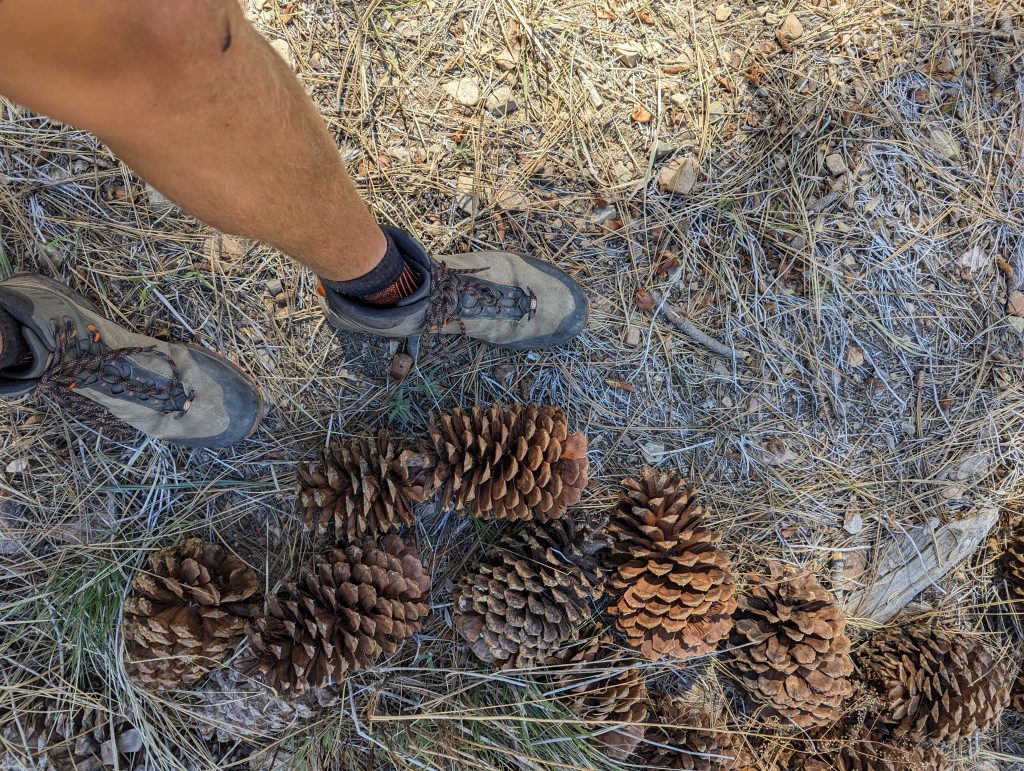 Auch die riesigen Zapfen der Bäume sind wirklich beeindruckend. Hier ein Bild mit meinem Schuh als Vergleich.