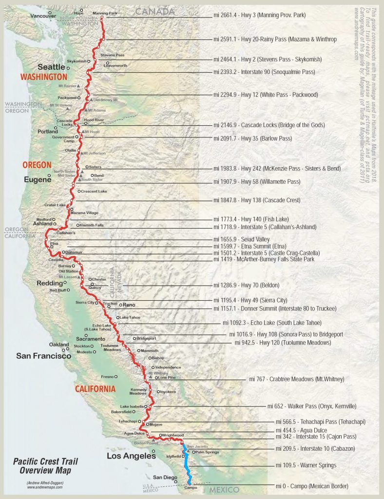 Hier wieder ein kleiner Überblick, wo Ich mich gerade befinde. Aktuell bin ich ziemlich genau an Meile 265 und habe somit bereits 10 Prozent des ganzen Weges absolviert, habe aber noch immer 2385 Meilen vor mir.