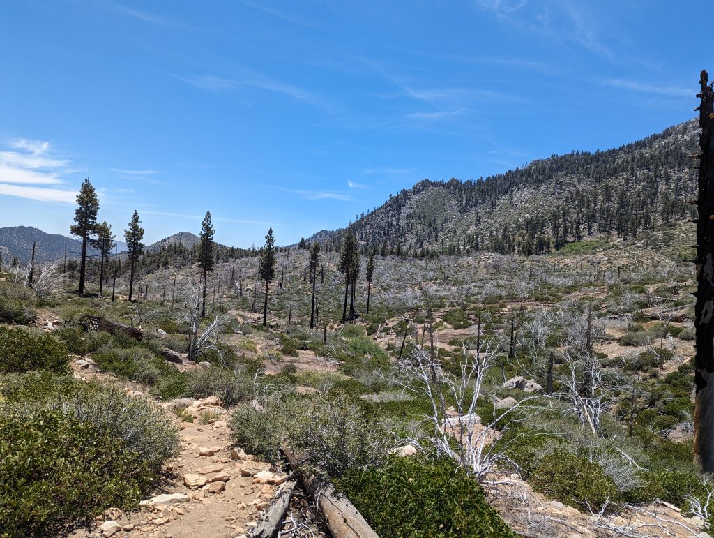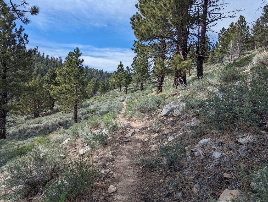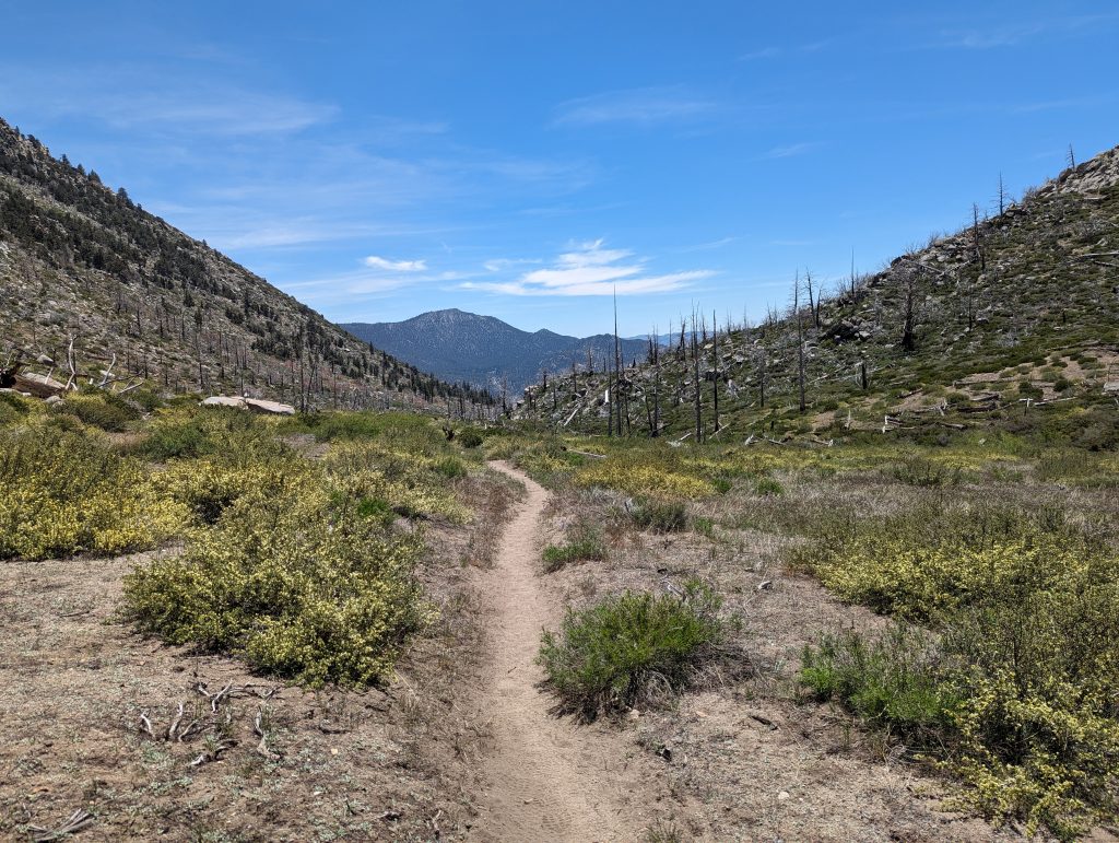 Nach dem gestrigen Pausentag, fühle ich mich heute top ausgeruht und laufe daher direkt schnell los. Nach einem kurzen Abschnitt auf der Straße, erreiche ich wieder den PCT und es geht durch eine grüne Umgebung in Richtung Berge.