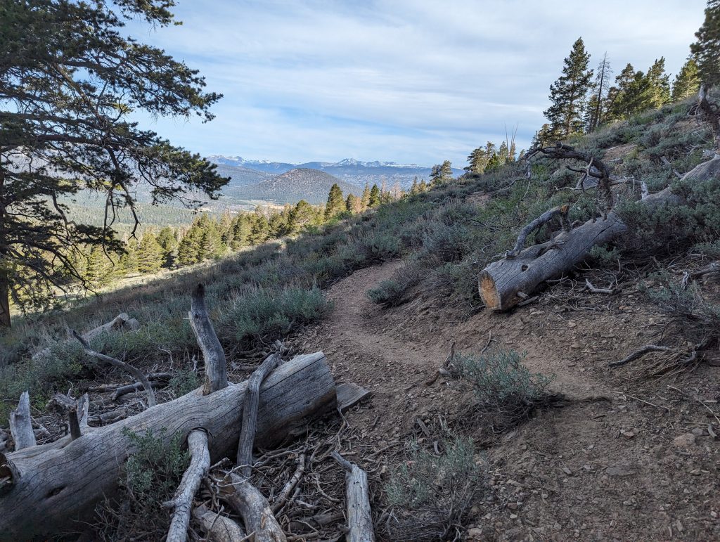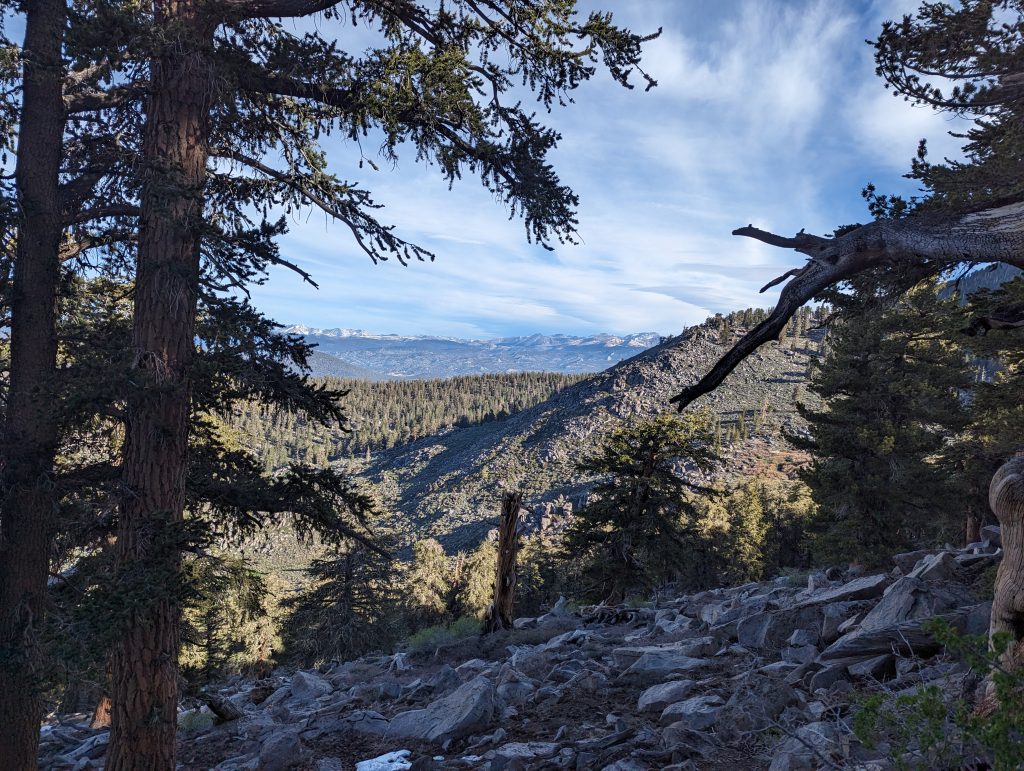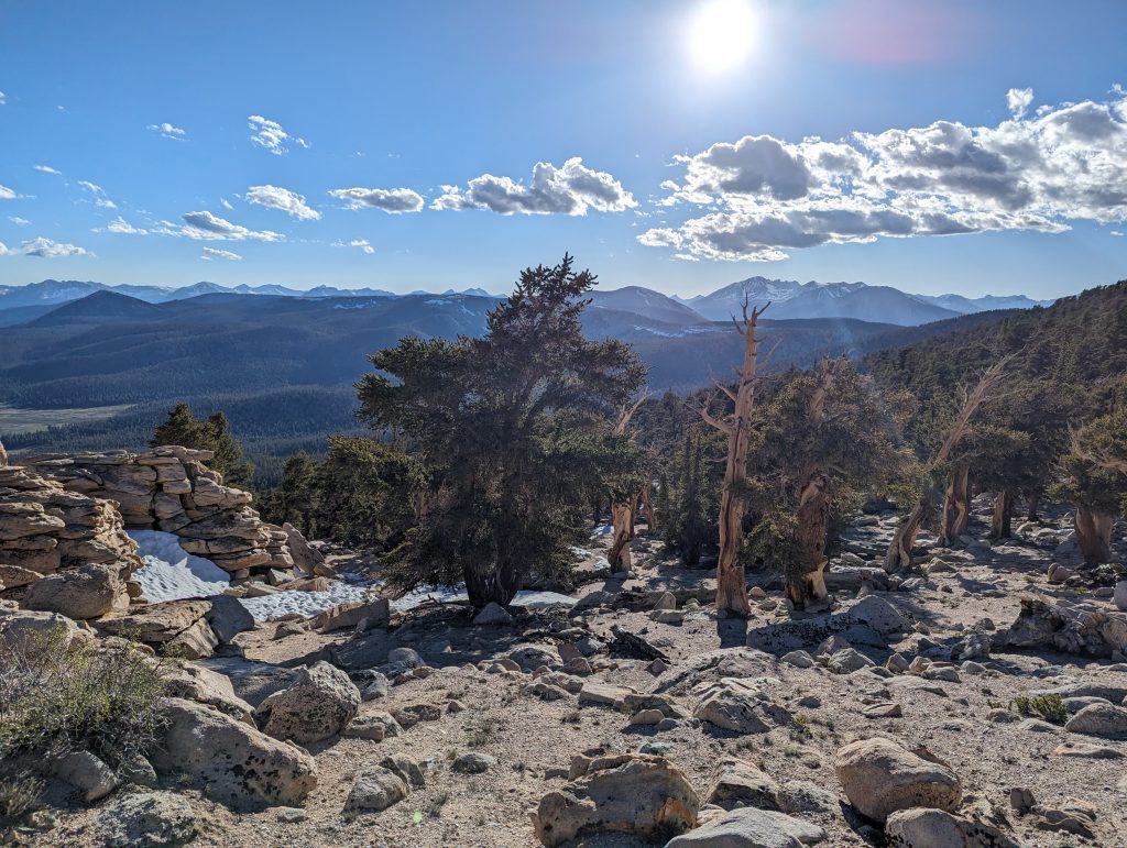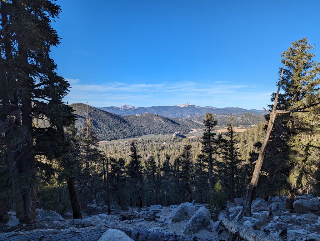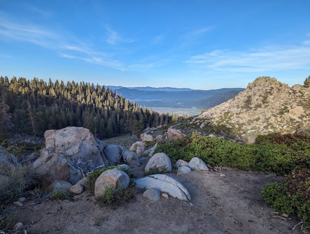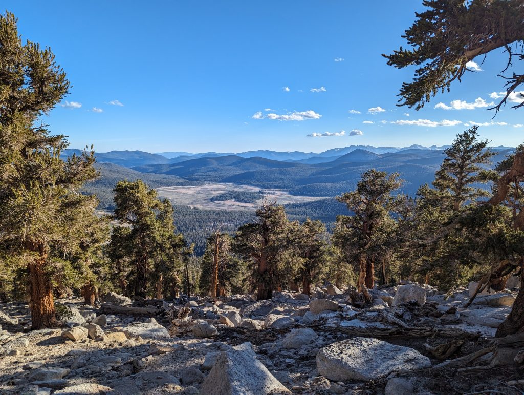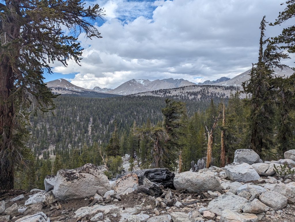 Nach einigen weiteren Minuten, komme ich tatsächlich an einer guten Stelle mit reichlich Platz an und die Aussicht ist wirklich nicht schlecht. Der lange Anstieg heute hat mich immerhin auf fast 3000 Meter über dem Meeresspiegel hinaufgeführt. Eigentlich hatte ich mir vorgenommen heute nur 10-15 Meilen zu wandern, um die Schuhe langsam einzulaufen. Leider habe ich es nicht geschafft mich zu zügeln und somit waren es am Ende dann doch wieder 21 Meilen mit über 1600 Höhenmetern im Aufstieg. Immerhin habe ich trotzdem keine Blasen bekommen, worüber ich ganz glücklich bin.
