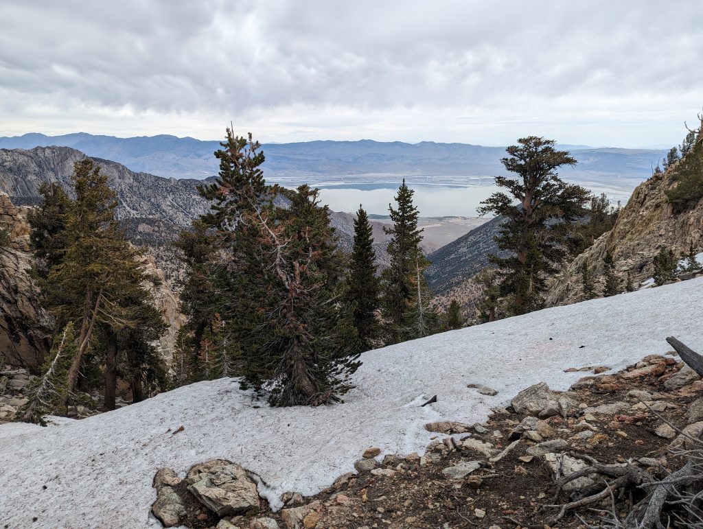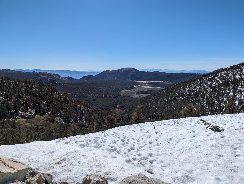 Für mich geht es direkt weiter den Berg hinauf. Es geht die meiste Zeit durch den Wald und die Temperaturen sind sehr angenehm. Immer wieder bekomme ich eine schöne Aussicht zu Gesicht und darf zwischendrin auch über kleinere Schneefelder laufen. Immerhin sind diese weder besonders groß, noch wirklich rutschig und somit komme ich trotzdem gut voran.