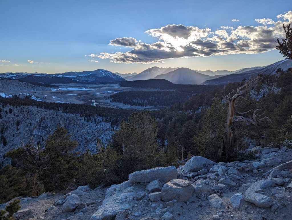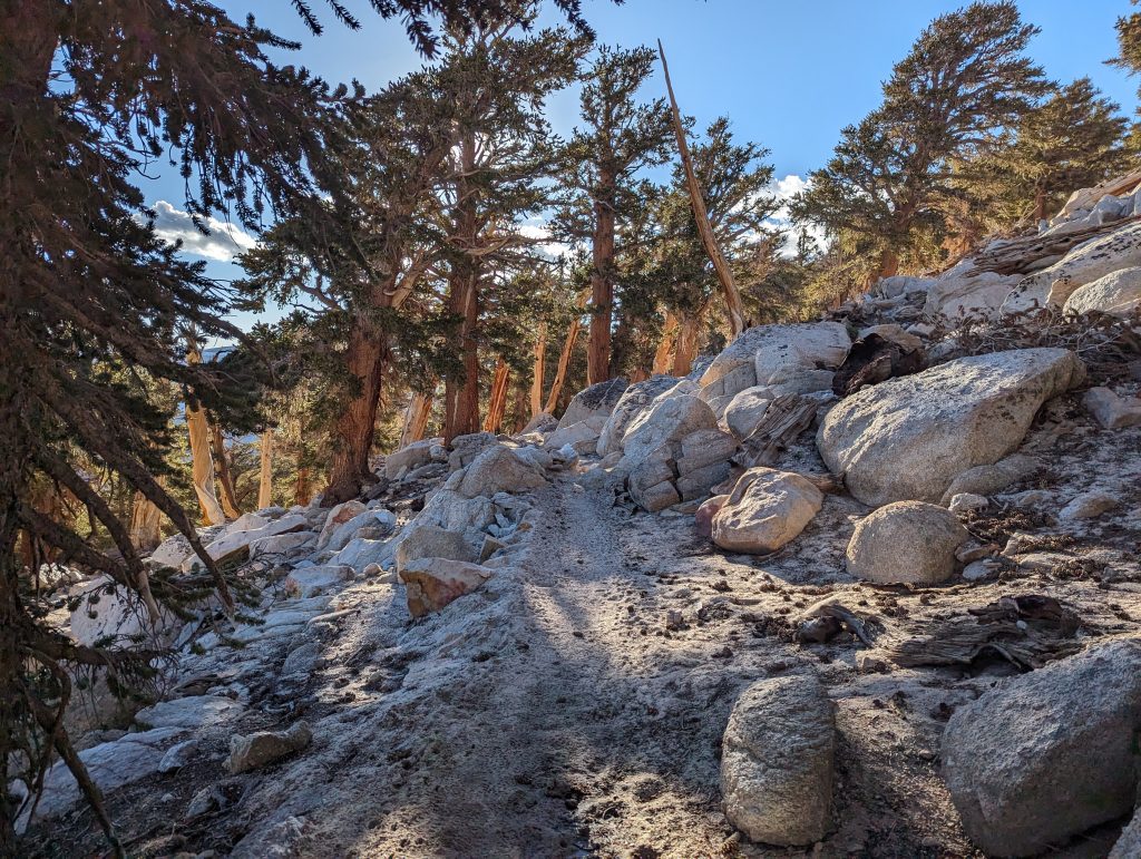 Nach einiger Zeit erreiche ich dann aber doch wieder den eigentlichen PCT-Trail. Da die Sonne noch nicht untergegangen ist und mir noch etwas Zeit bleibt, entscheide ich mich dazu heute noch einige Meilen zu machen, um morgen einen kurzen Tag zu haben, den ich zum Ausruhen nutzen möchte, bevor es am darauffolgenden Tag auf den Mount Whitney, den höchsten Berg der USA außerhalb von Alaska, geht. Also laufe ich bei sinkender Sonne immer weiter. Dir Landschaft wirkt dadurch mal wieder besonders schön.