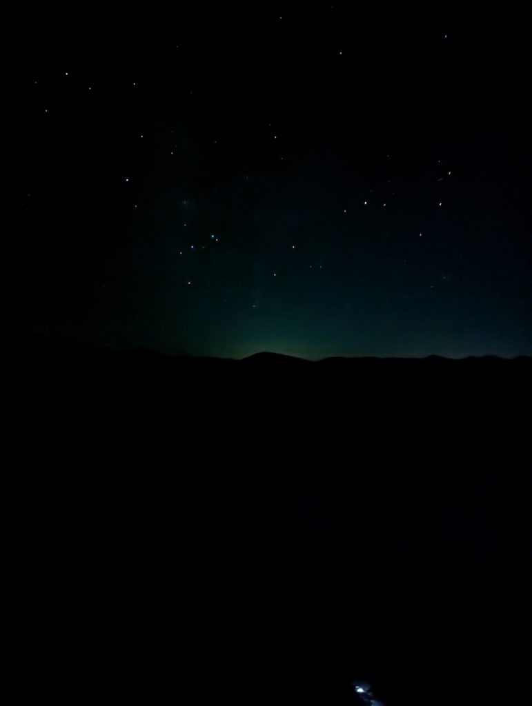 Da es eine sehr klare Nacht ist, bestaunen wir immer wieder den Sternenhimmel über uns. Sogar die Milchstraße ist mit bloßem Auge klar zu erkennen, was wirklich faszinierend ist.