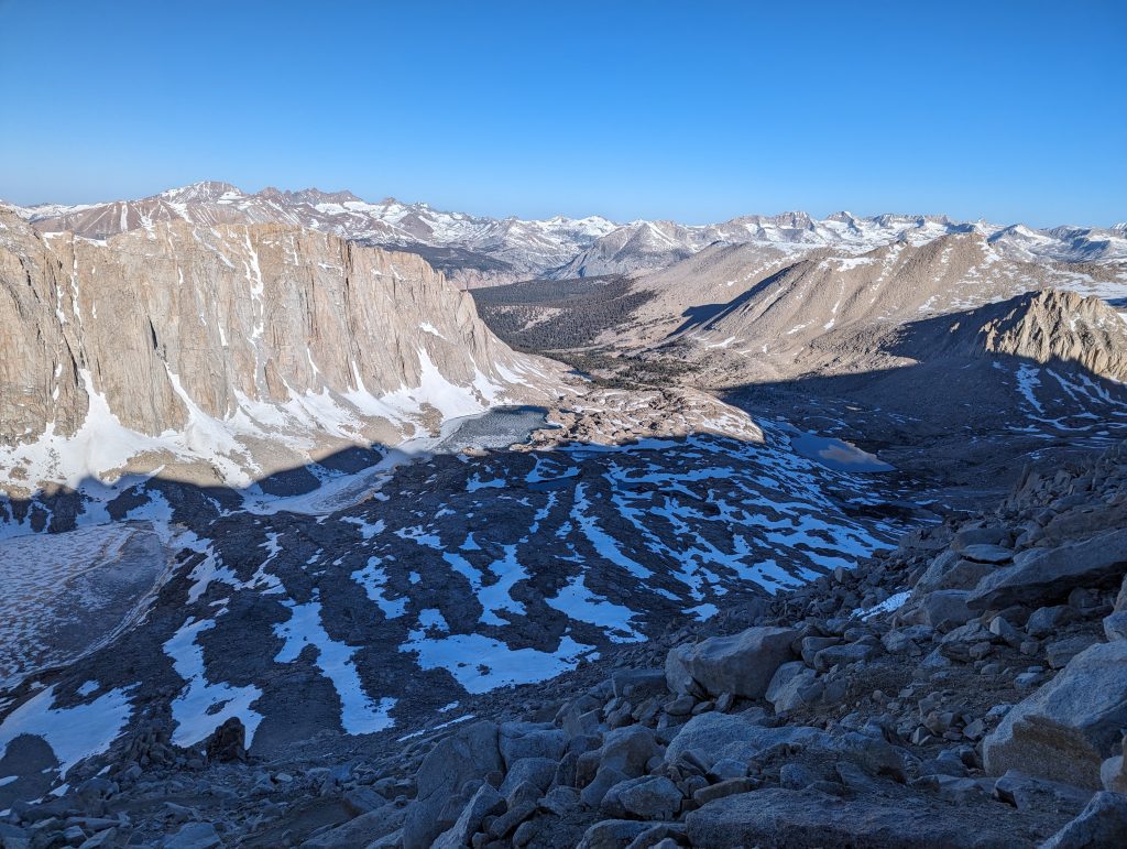 Nach etwa 2,5 Stunden erreiche ich dann wieder das Camp, wo ich heute Nacht aufgebrochen war. Insgesamt habe ich für den Auf- und Abstieg knapp 6,5 Stunden gebraucht. Nachdem ich bereits einige 3000er und in Mendoza einen 5000er erklommen hatte, kann ich mit der erfolgreichen Besteigung des Mount Whitney nun auch einen 4000er zu meiner Liste hinzufügen.