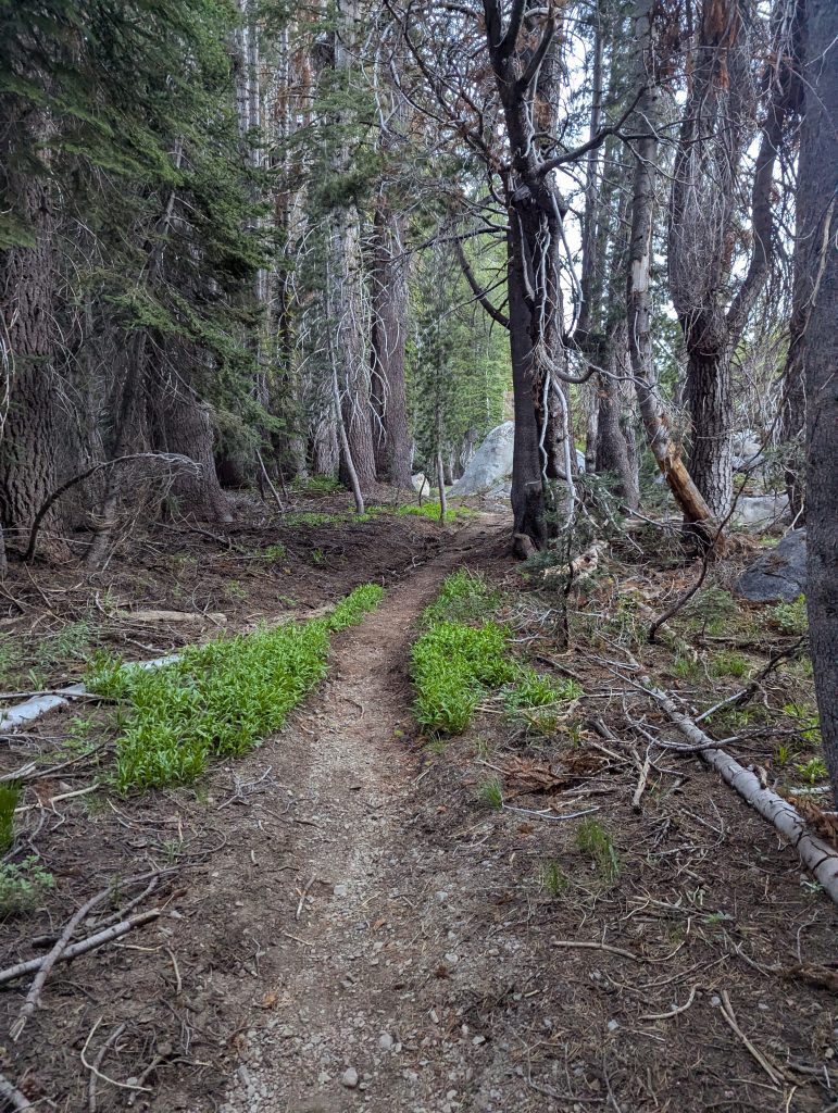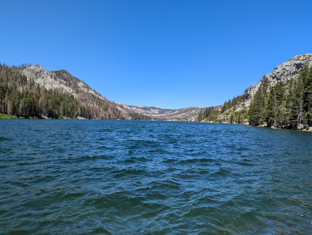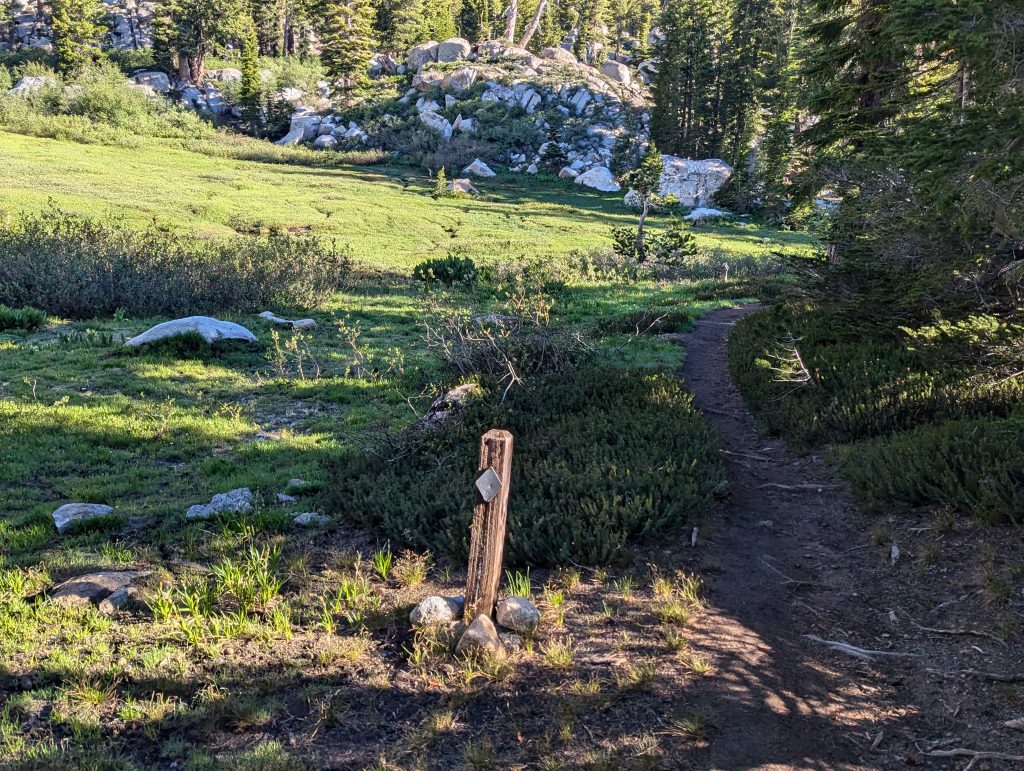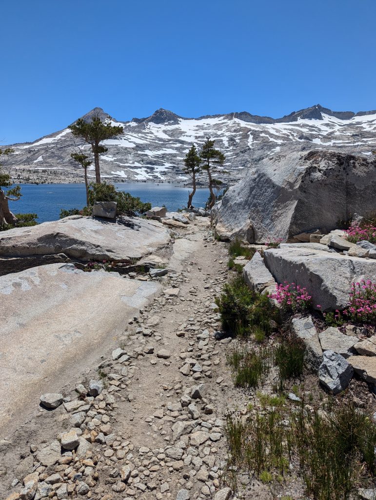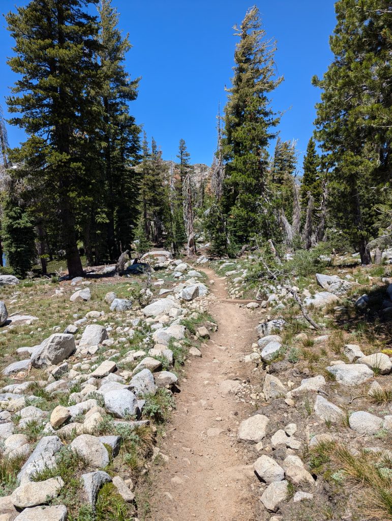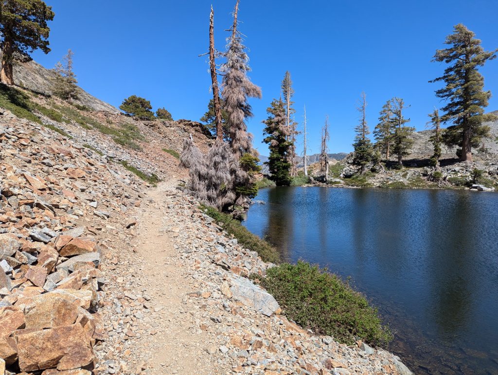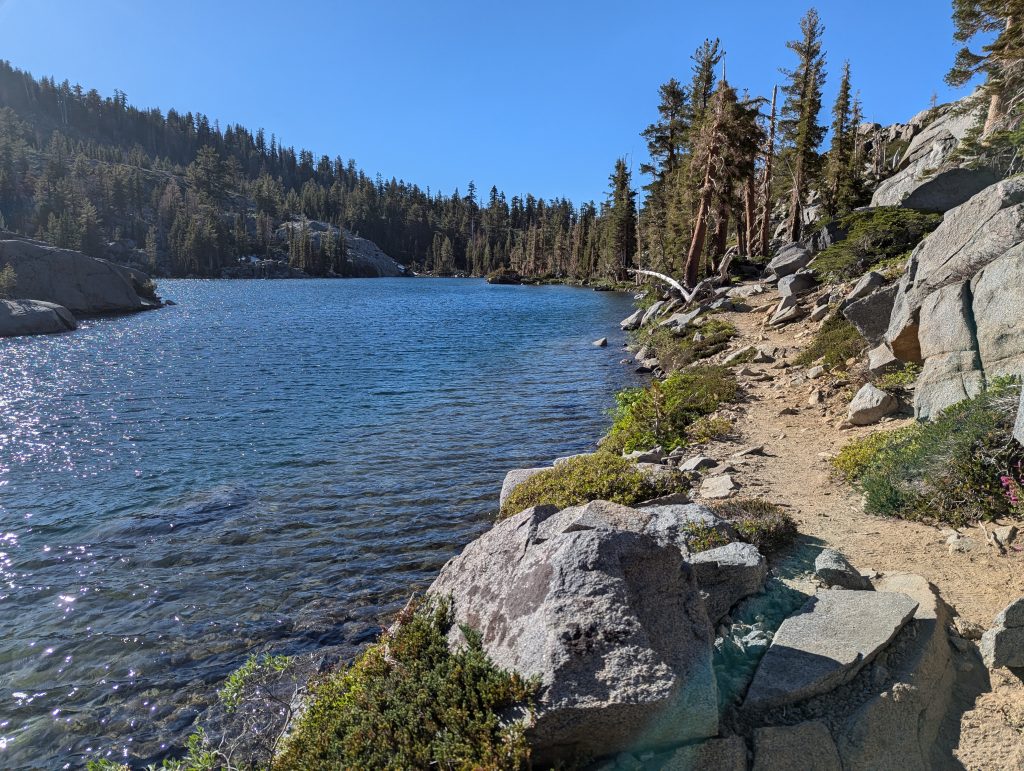 Da ich noch einige Meilen machen möchte, starte ich dementsprechend schnell in den Tag. Es geht kurze Zeit durch den Wald bergauf und dann erreiche ich den Echo Lake, dem ich für einige Meilen den Berg hinauf folge. Hier sind viele Tagestouristen unterwegs und direkt am Wasser kann ich auch einige Zelte ausmachen. Da es mir für ein Bad zu kalt erscheint, laufe ich einfach immer weiter nach hinten.