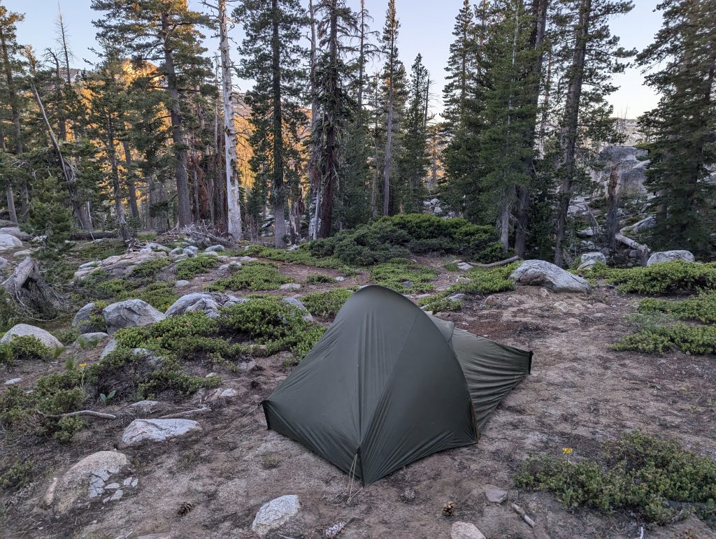 Nach ziemlich genau 20 Meilen biege ich ab und baue mein Zelt im Wald auf. Wenig später kommt Grace, die in etwa ein ähnliches Tempo läuft wir ich, dazu. Grace habe ich bereits in der Wüste häufiger angetroffen, dann aber in den letzten Wochen nicht mehr gesehen, bevor sie heute am Aussichtspunkt wieder aufgetaucht ist. Wir essen noch gemeinsam zu Abend und dann geht es auch schon wieder ins Bett.