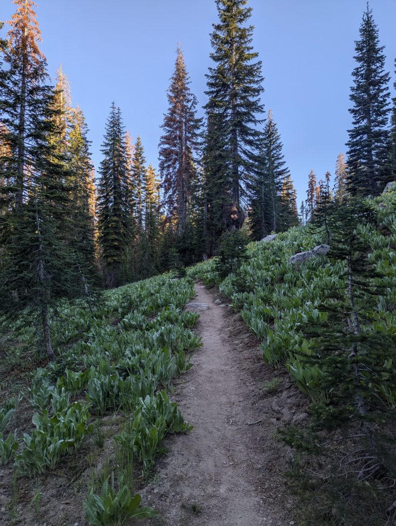 Es geht direkt durch den Wald und schon bald zieht der Weg etwas an. Wie ich zwischendrin erfahre, hat die eine Gruppe am Morgen einen Bären direkt auf dem Trail gesehen, was ich anscheinend verpasst habe. Somit muss ich weiterhin auf meine erste Bärensichtung in freier Wildbahn warten.