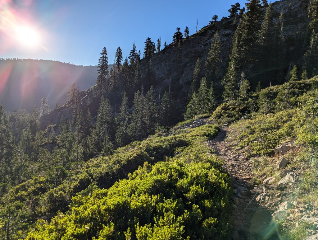 Heute stehe ich um 6 Uhr auf und frühstücke schnell, um mich gleich auf den Weg zu machen. Denn heute möchte ich noch am Morgen in Sierra City ankommen, um dort ein richtiges Frühstück in einem Café zu mir nehmen zu können. Während die Sonne langsam über den Berg steigt, packe ich alles zusammen und laufe dann los.