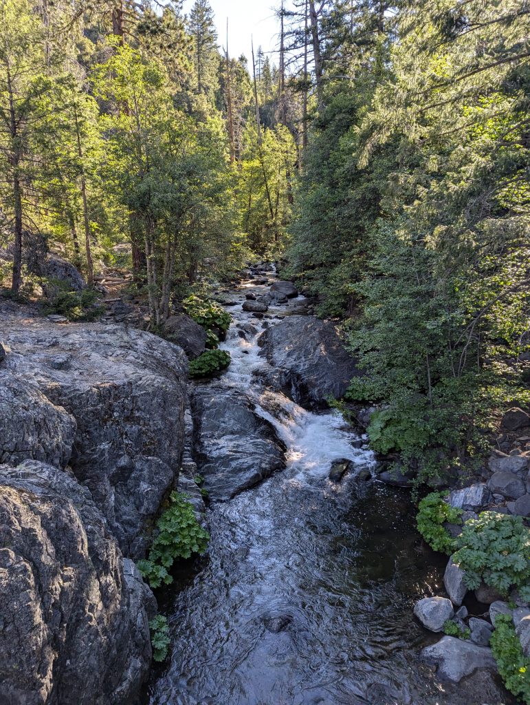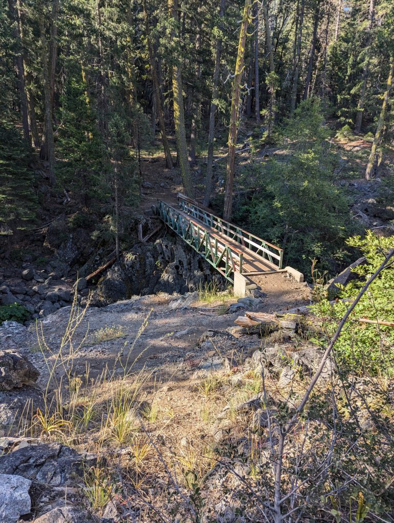 Zwischendrin darf ich den kleinen Fluss über eine schöne Brücke überqueren. Danach folgen nochmals ein paar Meilen, bevor ich endlich an der Straße, die nach Sierra City führt, ankomme.