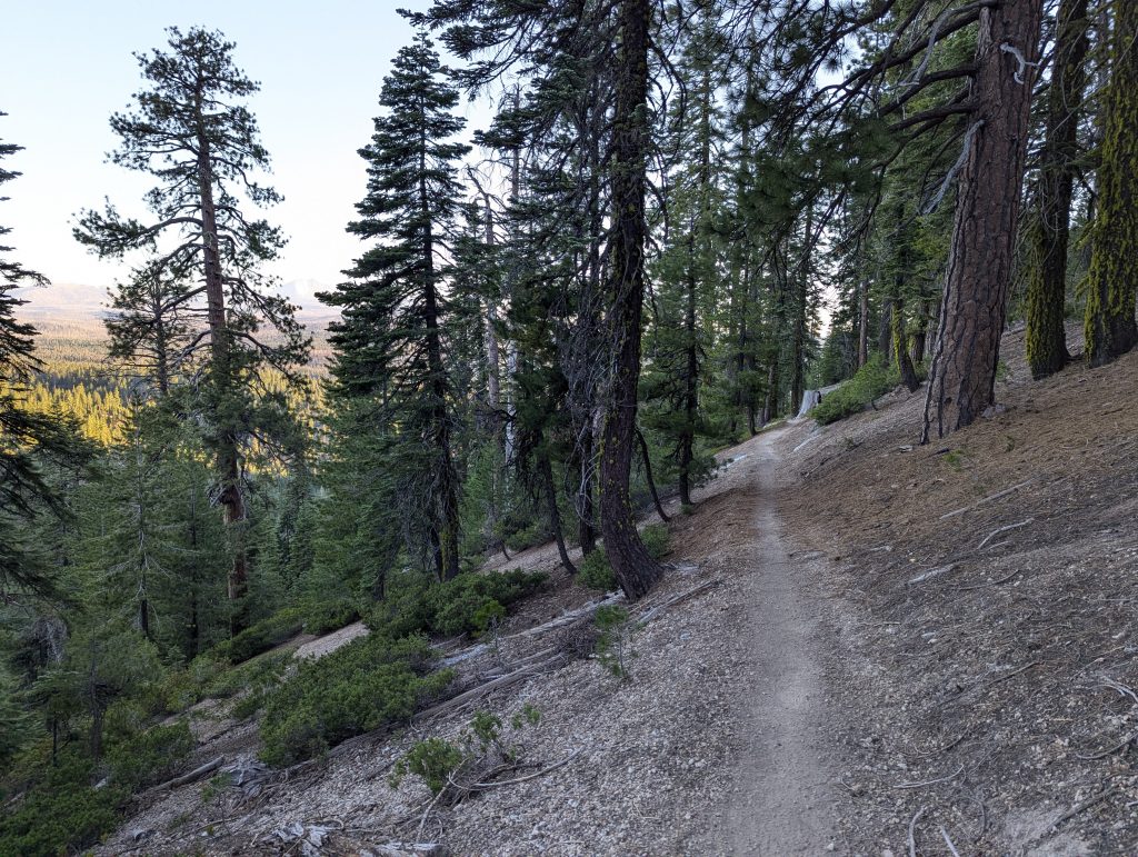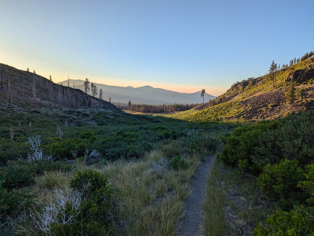 Ich stehe früh auf und esse Haferflocken. Anscheinend habe ich keinen Kaffee gekauft und muss somit ohne loslaufen. Da ich meinen Bärenkanister abgegeben habe und dieser für eine Übernachtung im Lasen Nationalpark Pflicht ist, muss ich diesen Abschnitt an einem Tag durchqueren und habe es somit am Morgen eilig. Die 27 Meilen sollten aber gut machbar sein.