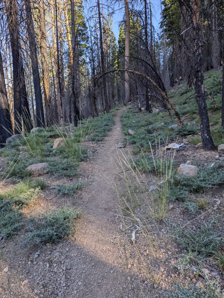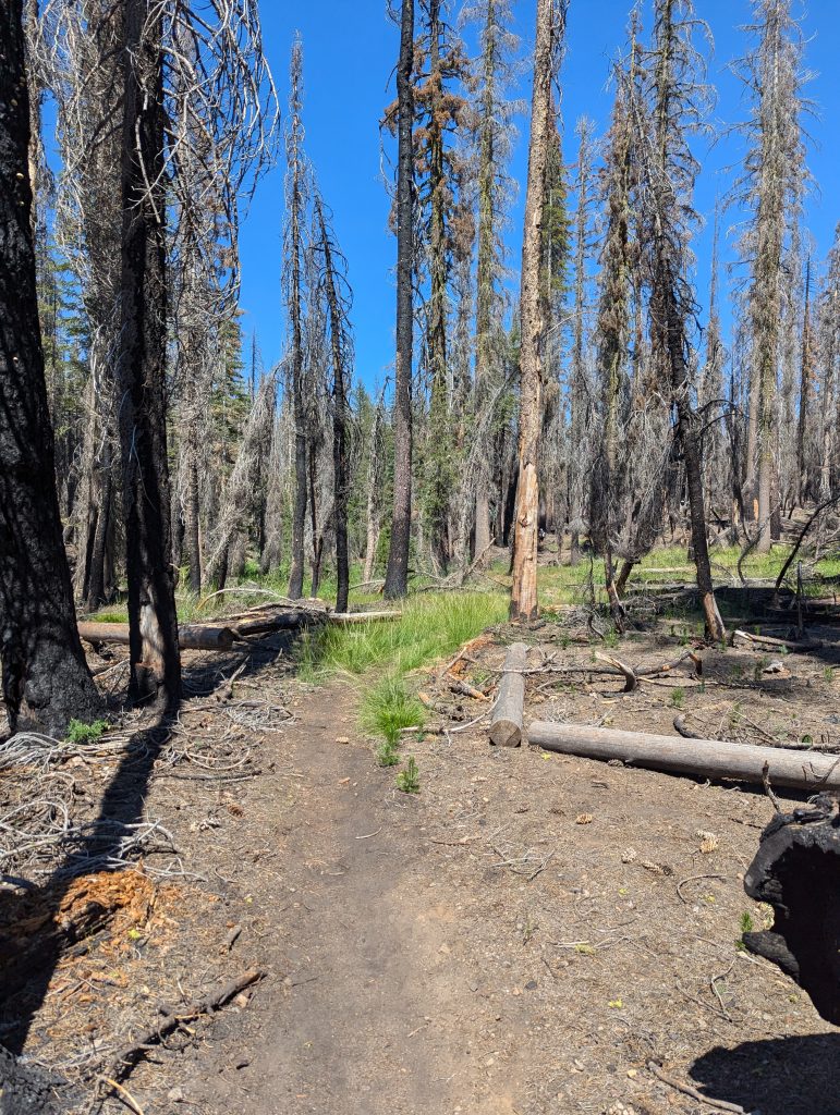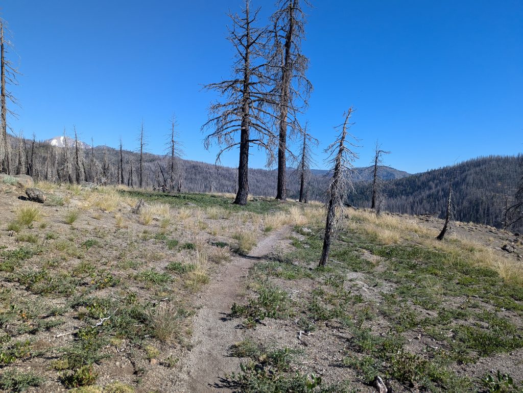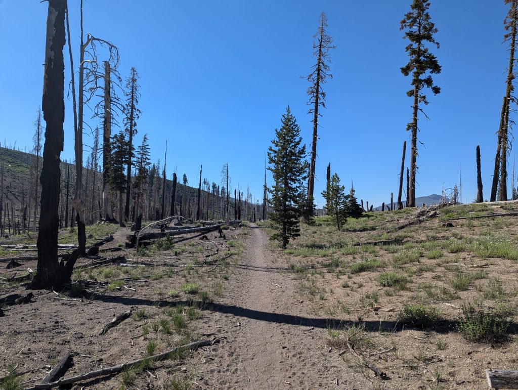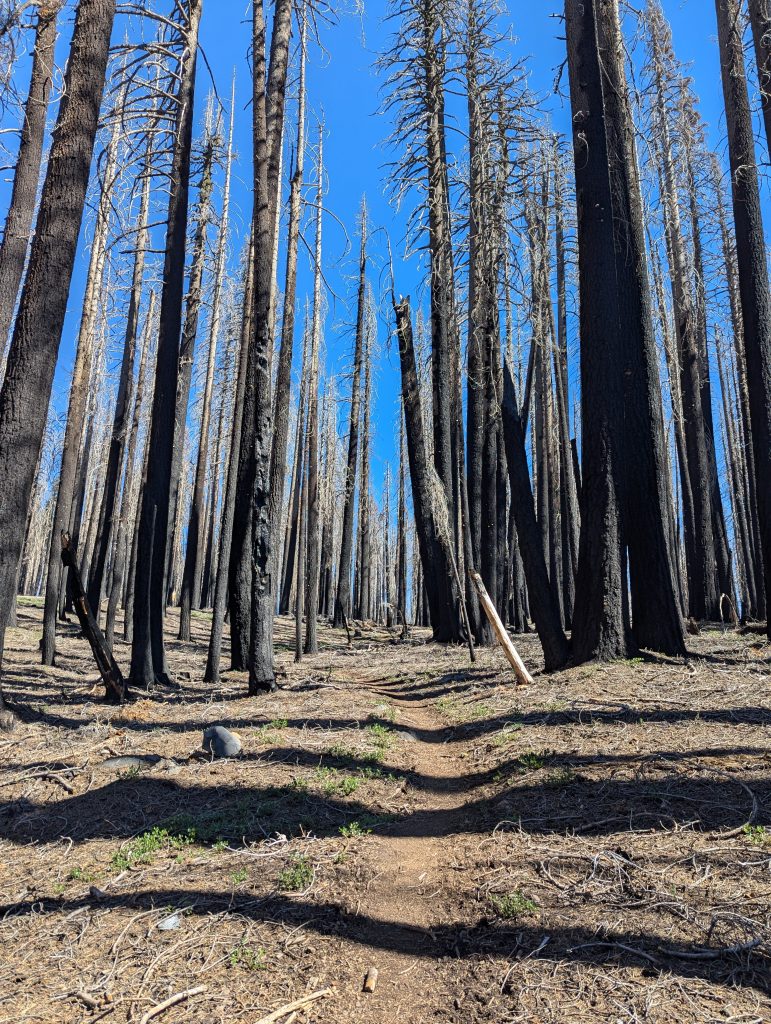 Für mich geht es dann erstmal durch den abgebrannten Wald bergauf und ich bekomme schon früh die Hitze der Sonne zu spüren.