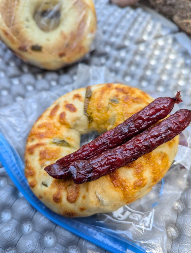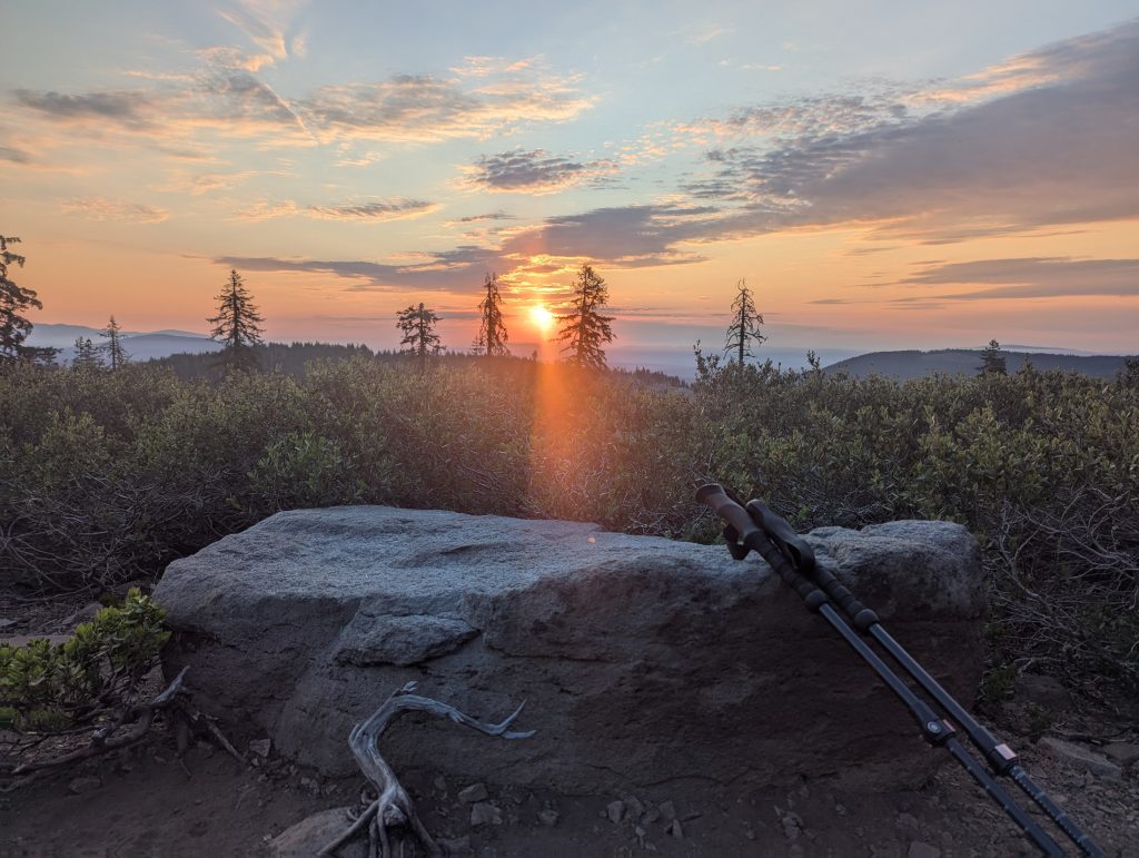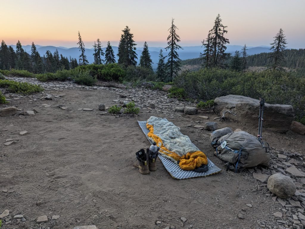 Heute Nacht habe ich nicht besonders gut geschlafen. Irgendwann um 3 Uhr bin ich aufgewacht, da entweder ein übereifriger Hiker oder ein Tier durch mein Nachtlager gelaufen ist. Von der Gangart würde ich eher auf einen Bären tippen. Trotzdem stehe ich um 5:30 Uhr auf und und frühstücke noch bei aufgehender Sonne.