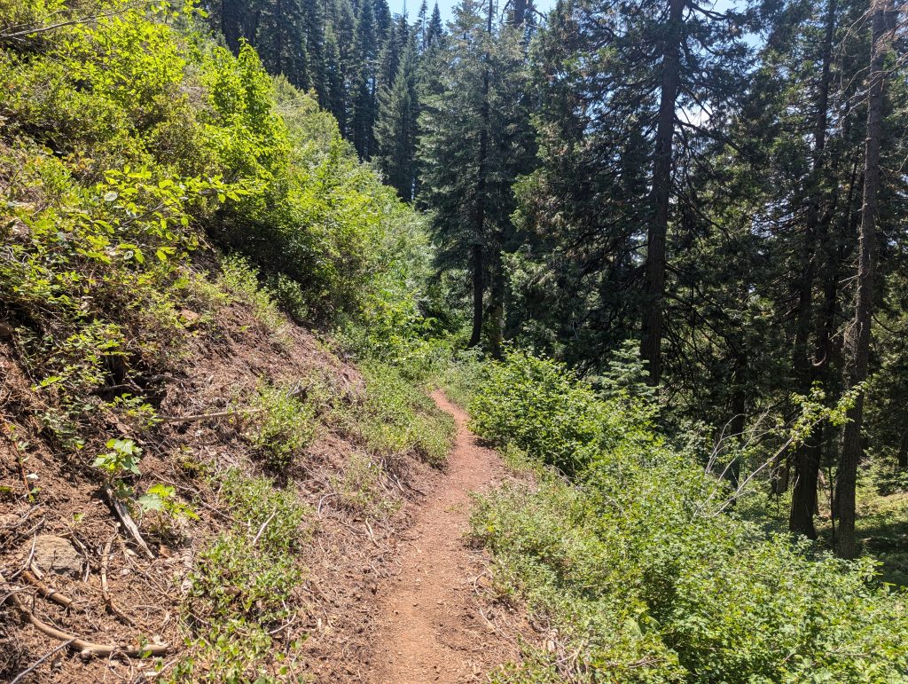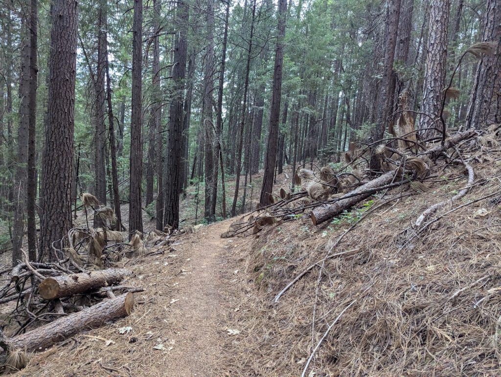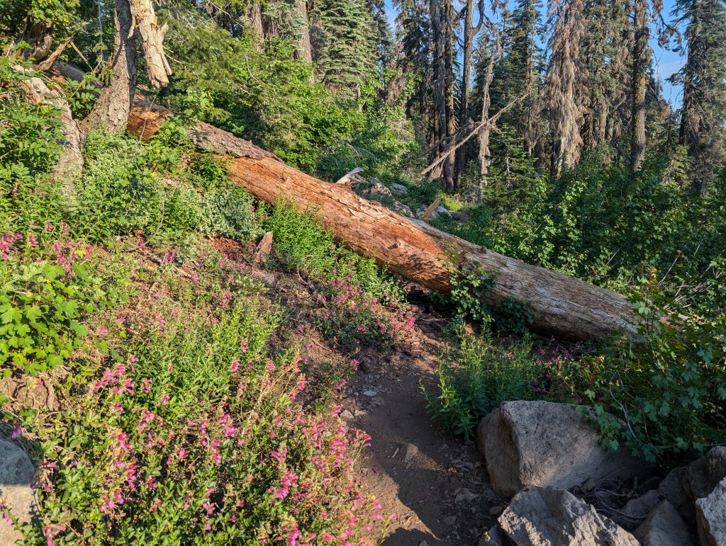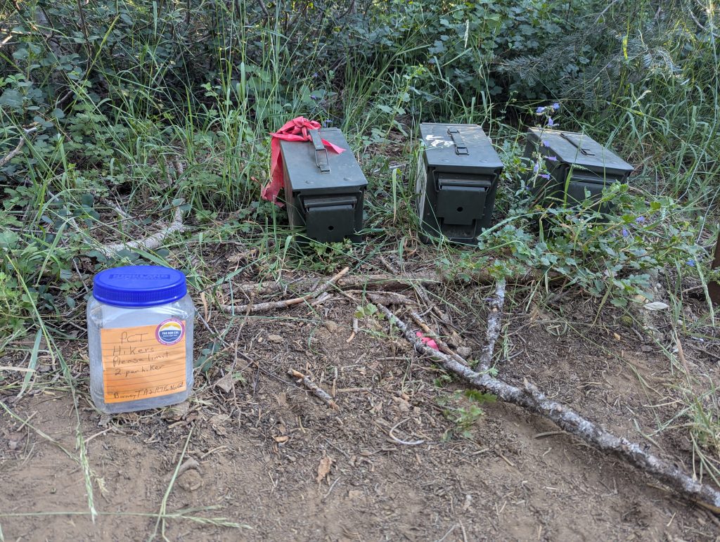 An einem schattigen Plätzchen setzte ich mich für einige Minuten hin und trinke etwas. Gerade als ich weiter wollte, kommt eine nette junge Dänin vorbei, die sich zu mir gesellt. Wie sich herausstellt ist sie den PCT bereits 2022 gelaufen, musste aber den aktuellen Abschnitt aufgrund der Feuer auslassen und ist nun zurückgekehrt, um diesen auch noch zu absolvieren. Im Gegensatz zu mir, läuft sie aktuell aber von Norden nach Süden. Nach einem netten, längeren Gespräch, mache ich mich nach etwa 1,5 Stunden aber wieder auf den Weg.