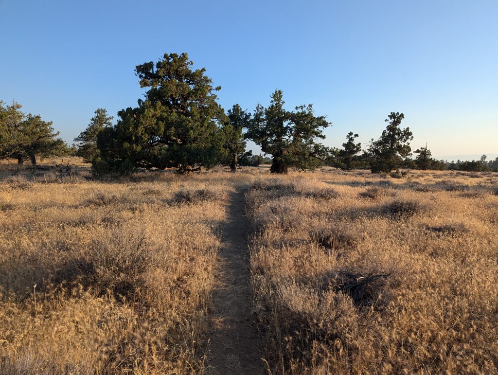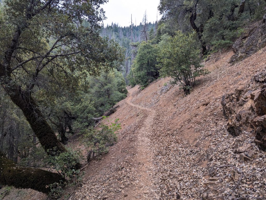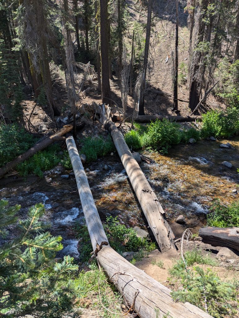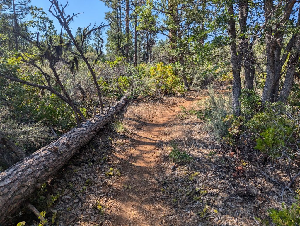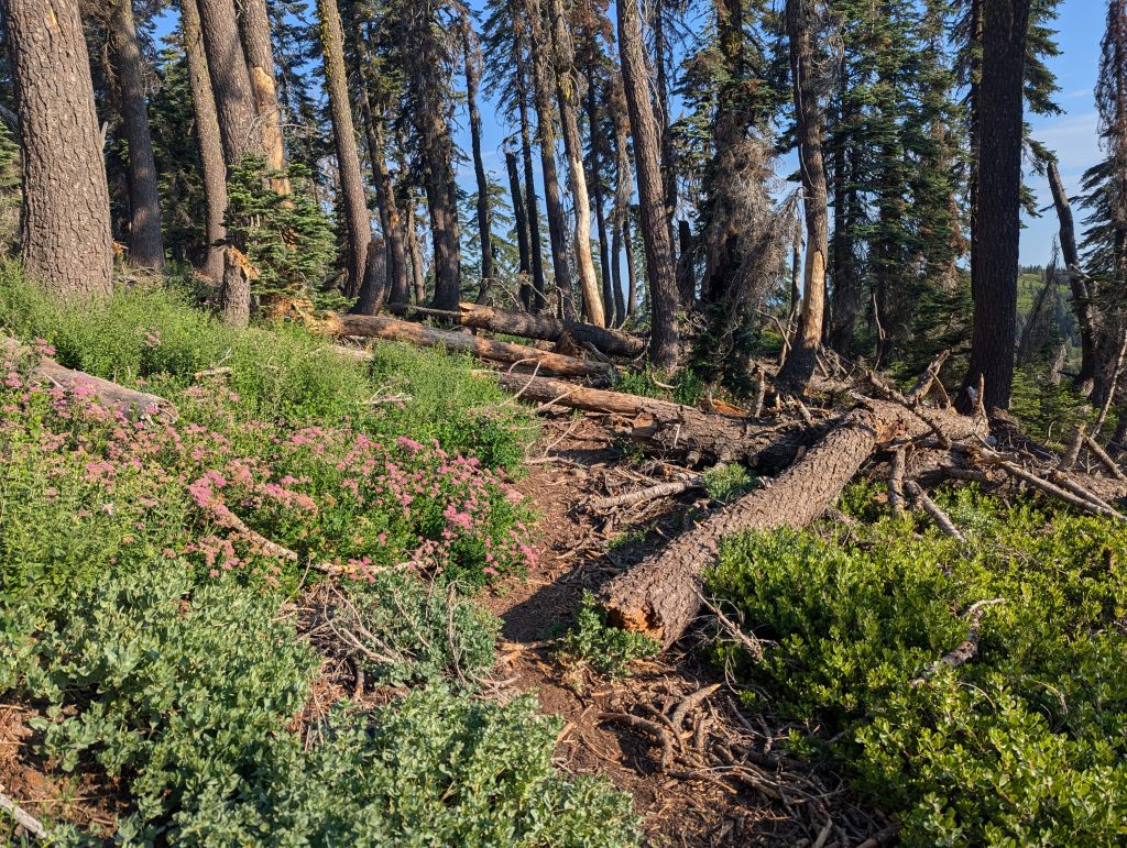 An einem schattigen Plätzchen setzte ich mich für einige Minuten hin und trinke etwas. Gerade als ich weiter wollte, kommt eine nette junge Dänin vorbei, die sich zu mir gesellt. Wie sich herausstellt ist sie den PCT bereits 2022 gelaufen, musste aber den aktuellen Abschnitt aufgrund der Feuer auslassen und ist nun zurückgekehrt, um diesen auch noch zu absolvieren. Im Gegensatz zu mir, läuft sie aktuell aber von Norden nach Süden. Nach einem netten, längeren Gespräch, mache ich mich nach etwa 1,5 Stunden aber wieder auf den Weg.