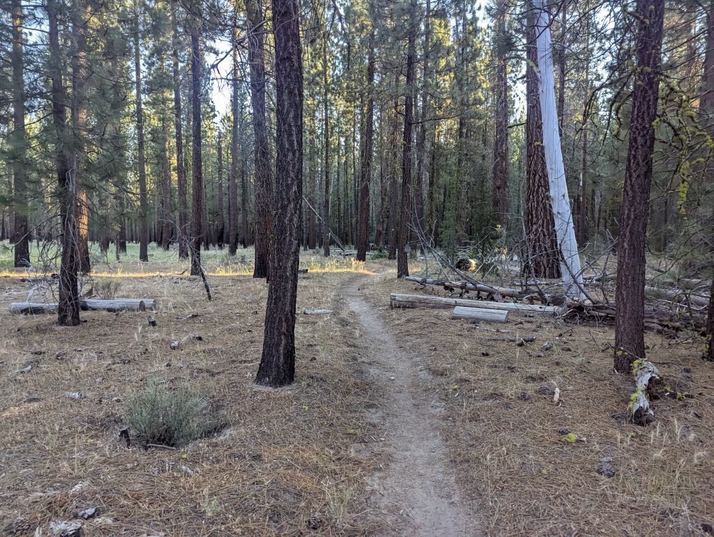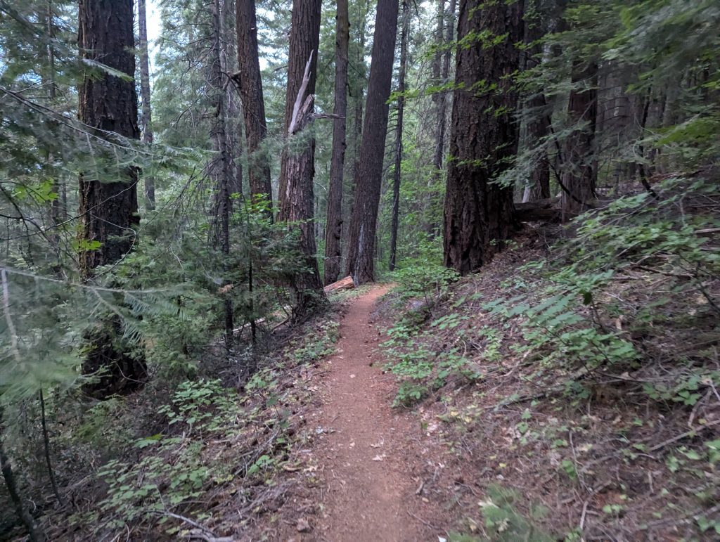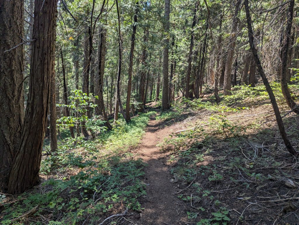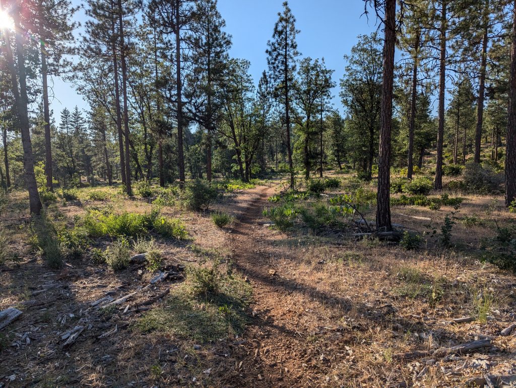 Es geht weiter über einen kleinen Pfad durch den Wald. Der Weg bietet wenig Abwechslung, ist aber im Gegensatz zu den abgebrannten Wäldern der letzten Tage trotzdem schön.
