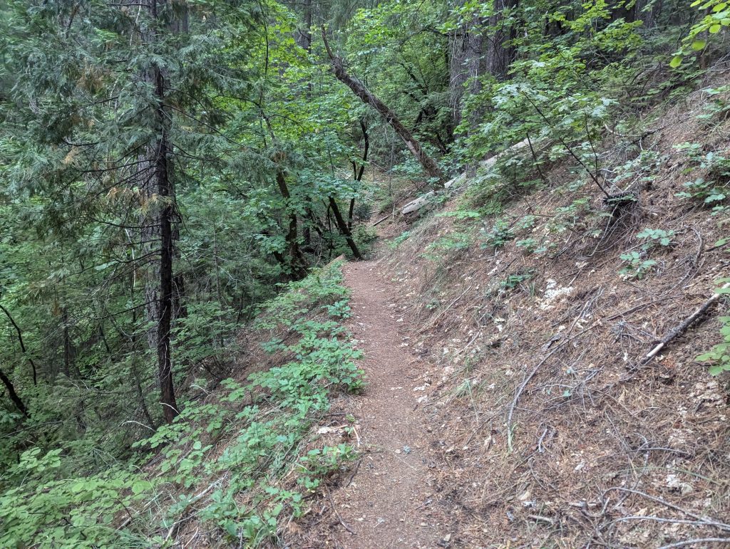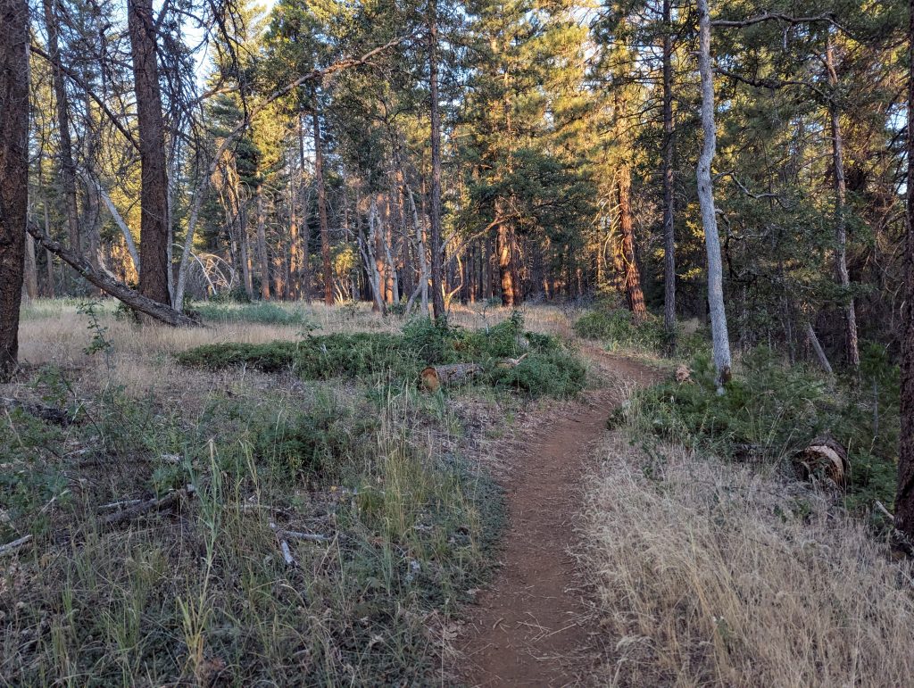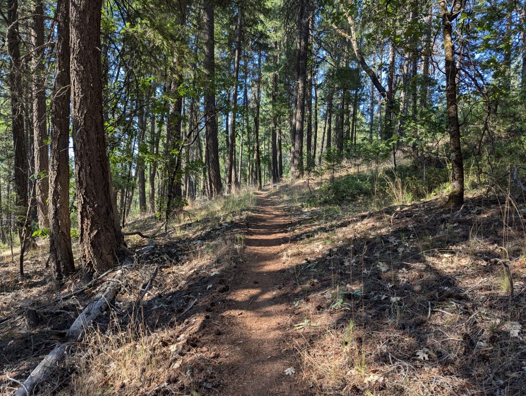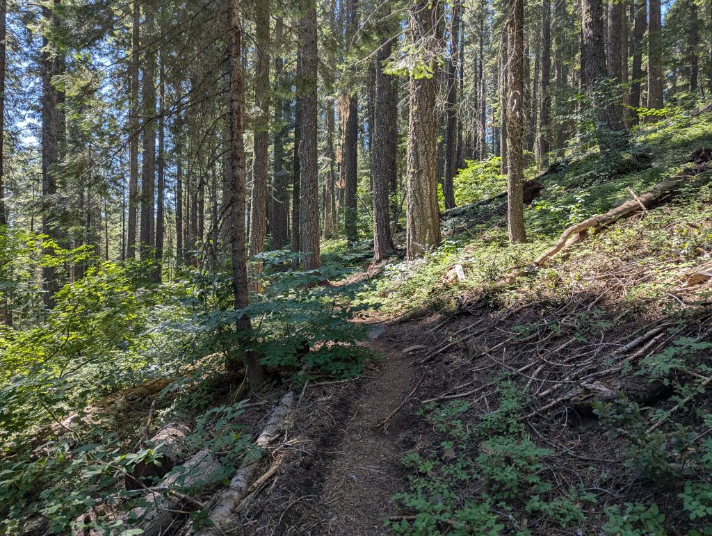 Es geht weiter über einen kleinen Pfad durch den Wald. Der Weg bietet wenig Abwechslung, ist aber im Gegensatz zu den abgebrannten Wäldern der letzten Tage trotzdem schön.