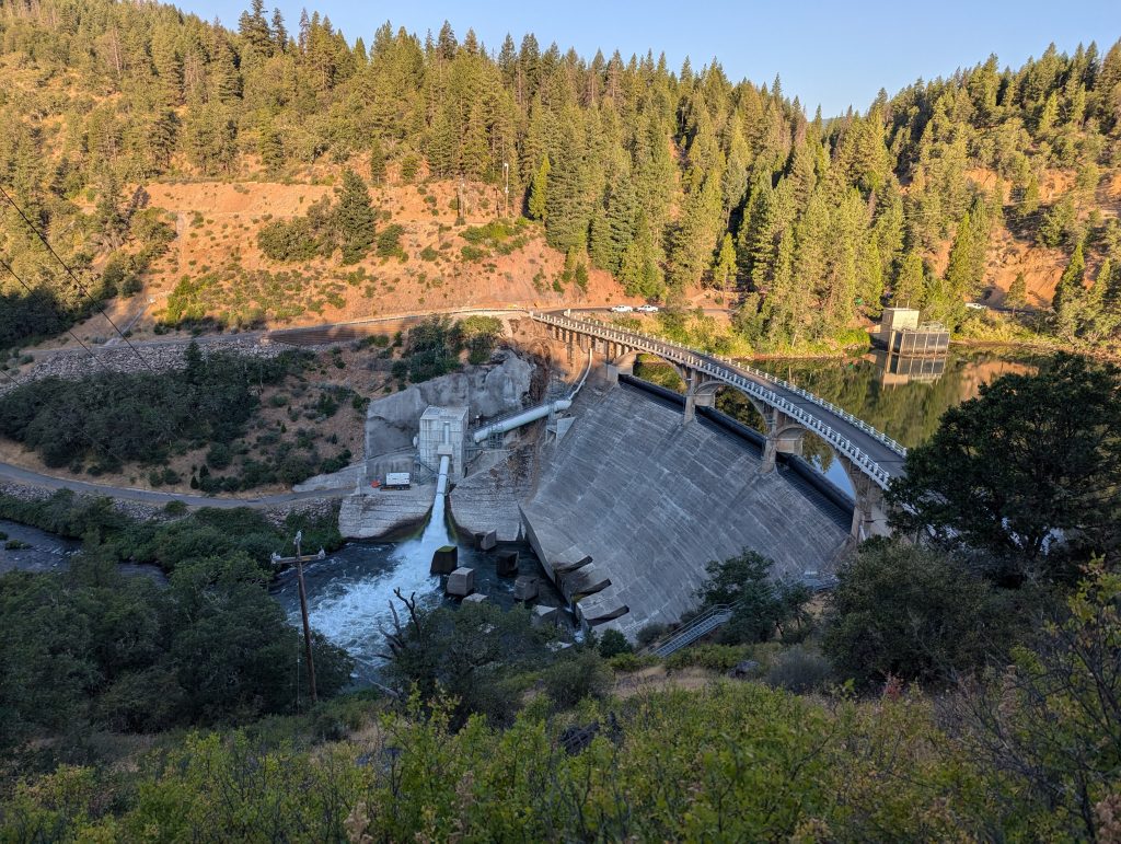 Kurz vor Mittag, erreiche ich noch einen See, neben dem ein Kraftwerk angebracht ist. Danach laufe ich noch einige Meter bergauf und biege dann zu einer Ranch ab, wo es einen kleinen Laden zum Auffrischen der Lebensmittel gibt. Um die Mittagshitze auszusitzen, bleibe ich einige Stunden hier. Ich nehme eine Dusche und wasche meine Kleider. Dann unterhalte ich mich längere Zeit mit anderen Hikern, dir hier heute in einem Schlafsaal übernachten. Später frische ich meine Nahrungsmittel im Laden auf und bekomme von der Frau des Hauses noch einen selbstgemachten Burrito geschenkt. Nach dem ich diesen gegessen habe, mache ich mich wieder auf den Weg. Insgesamt habe ich fast 4 Stunden hier verbracht und als ich wieder loslaufe ist die Hitze etwas angenehmer.