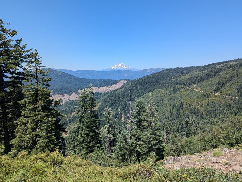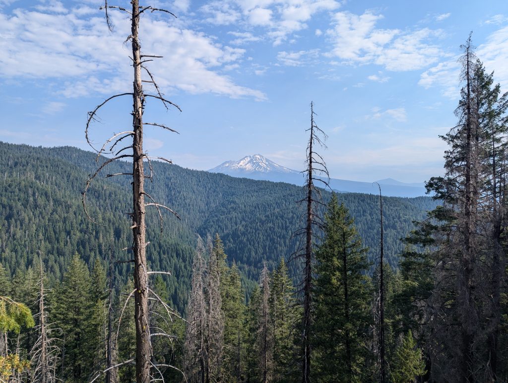 Erst gegen Mittag komme ich weiter nach oben und erhalte einen Blick auf den Mount Shasta.