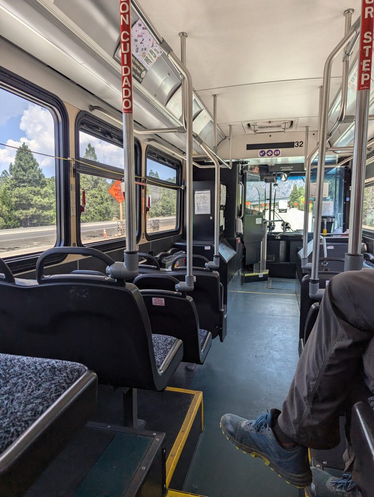 Kurze Zeit später kommt er in der Stadt an und wir suchen nach einer Möglichkeit, um noch zu frühstücken, bevor der Bus abfährt. Da leider gerade Stromausfall war, haben die meisten Restaurants noch geschlossen und somit frühstücken wir am Ende im Subway, da dieser Laden als einziger bereits wieder Essen anbietet. Kurz nach 12 Uhr fahren wir dann mit dem Bus nach Yreka. Eine andere Hikerin mit dem Namen „Nutella“ kommt auch noch mit.