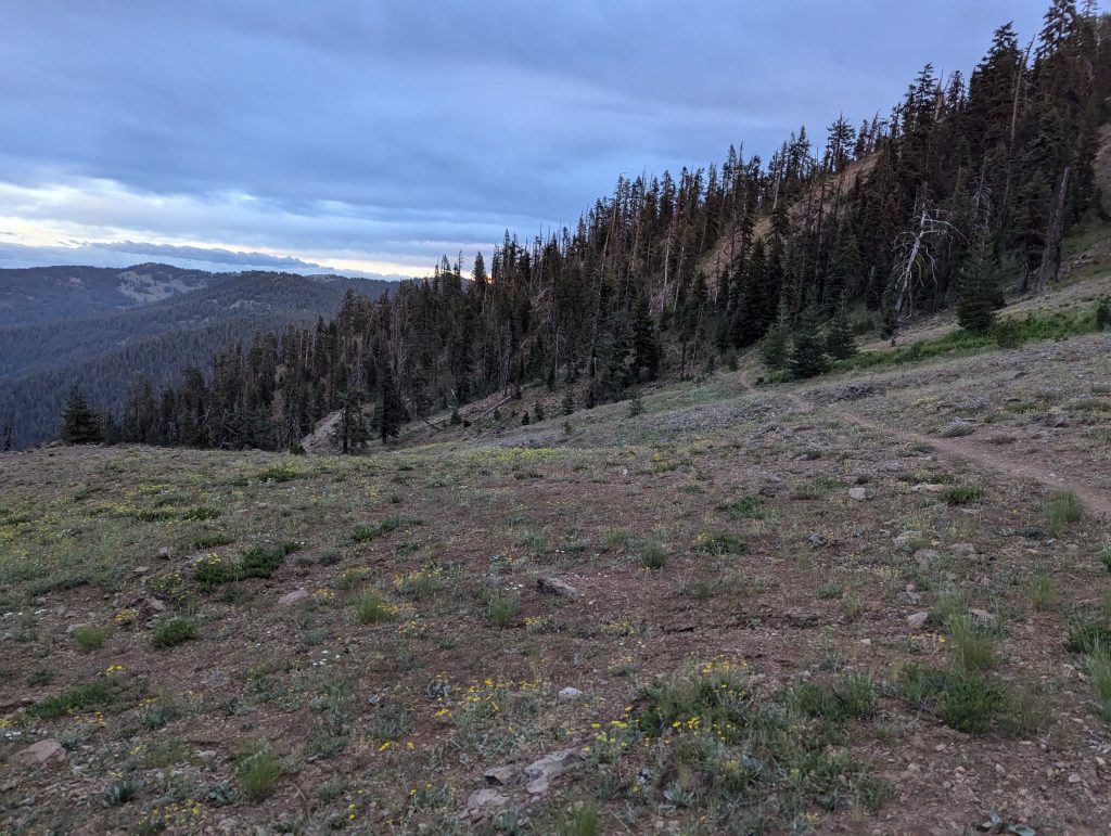 Am Morgen wechselt sich der Wald immer wieder mit kleine ausgesetzten Passagen ab, bei denen ich ab und an auch eine gute Aussicht bekomme.
